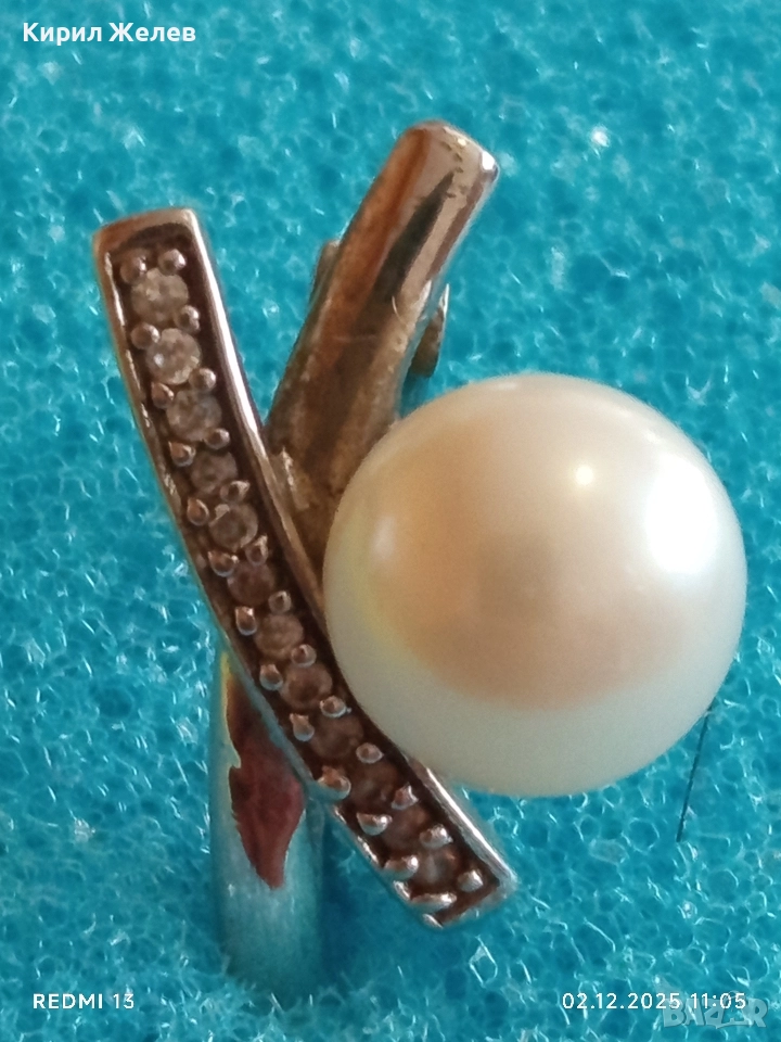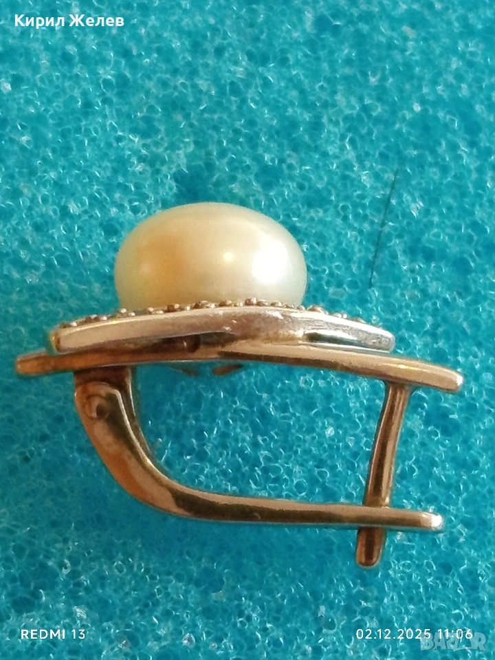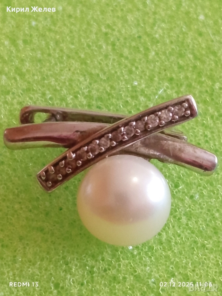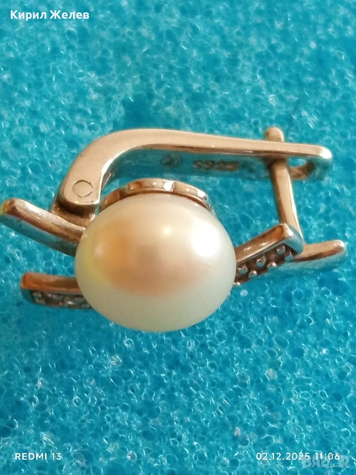 Сребърна обеца с малка перла и инкрустирани кристали стил и елегантност 39771