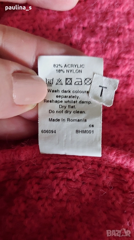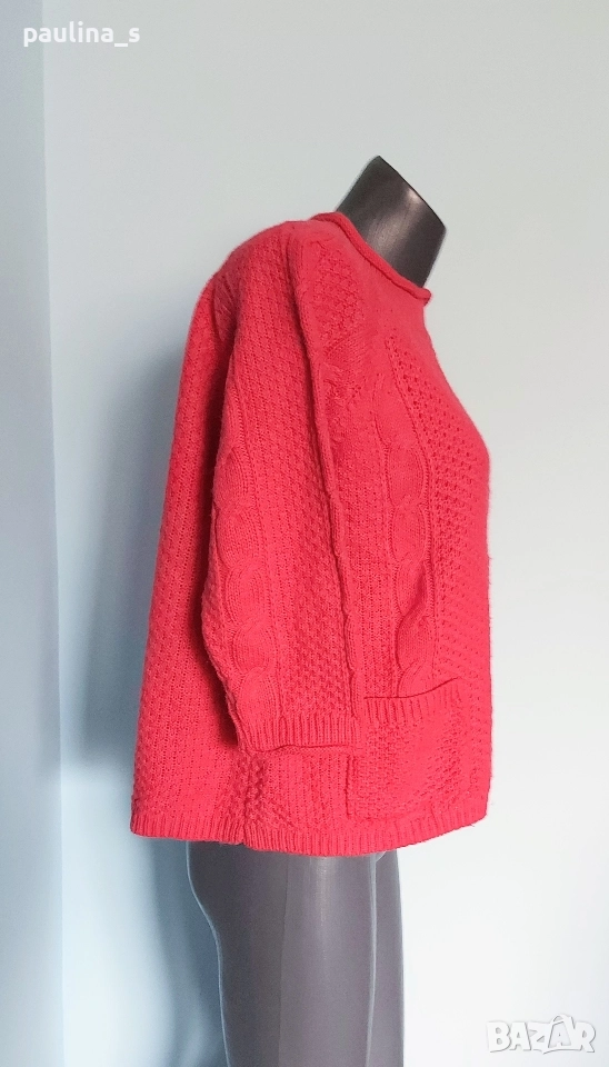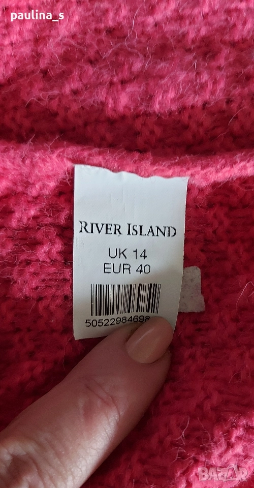 2️⃣. L / 2XL "River island". Цената е крайна, без пазарлъци 29,99лв / 15 евро. Много симпатичен брандов пуловер тип туника, Цвят неоново розово. Преждата е акрил и найлон, леко мъхеста, има еластичност. Моделът е с реглан ръкави(започват от бието) с дължина 7/8/. Декорации от вертикални плетеници и кокетни джобчета отпред. БЕЗУПРЕЧЕН-качеството е гарантирано от бранда.