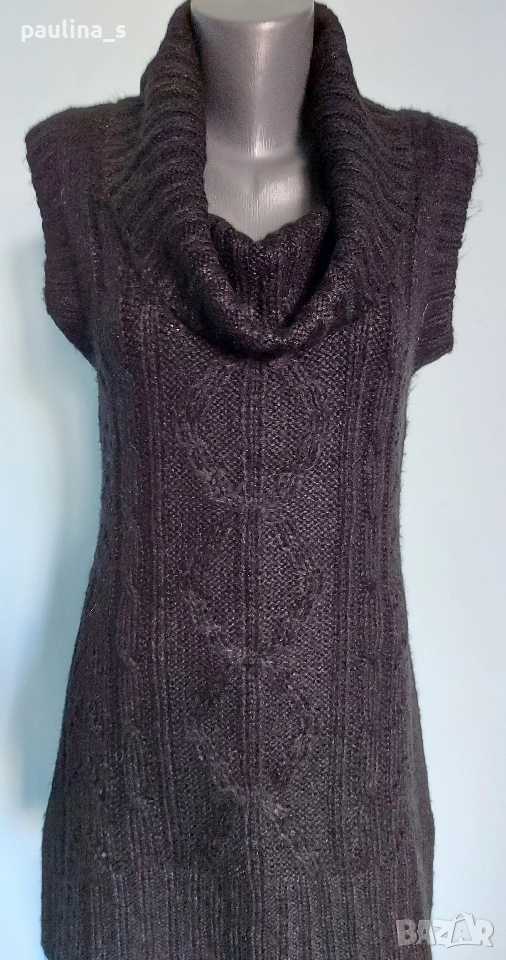 1️⃣. M / XL - "Chris line". Цената е крайна, без пазарлъци 19,99лв / 10 евро. Дамска маркова туника тип къса рокля. Преждата е пухкав акрил, декорациите са от плетеници. Стои елегантно, леко втален силует. Плетивото има еластичност и покрива няколко размера, посочени са. Една бройка е като нова.