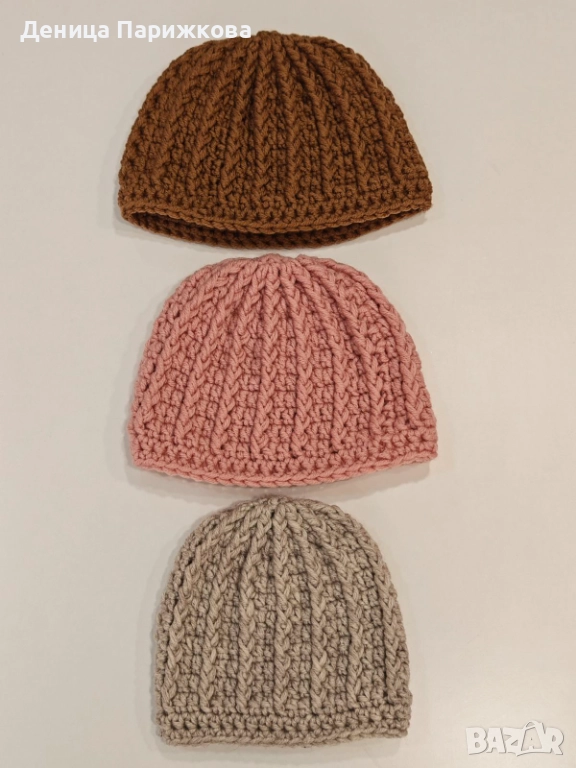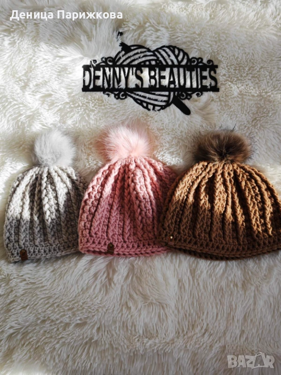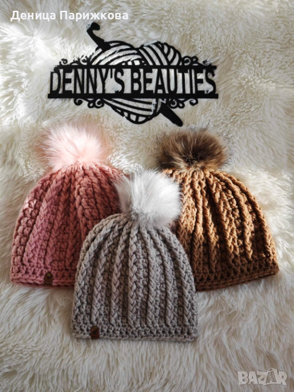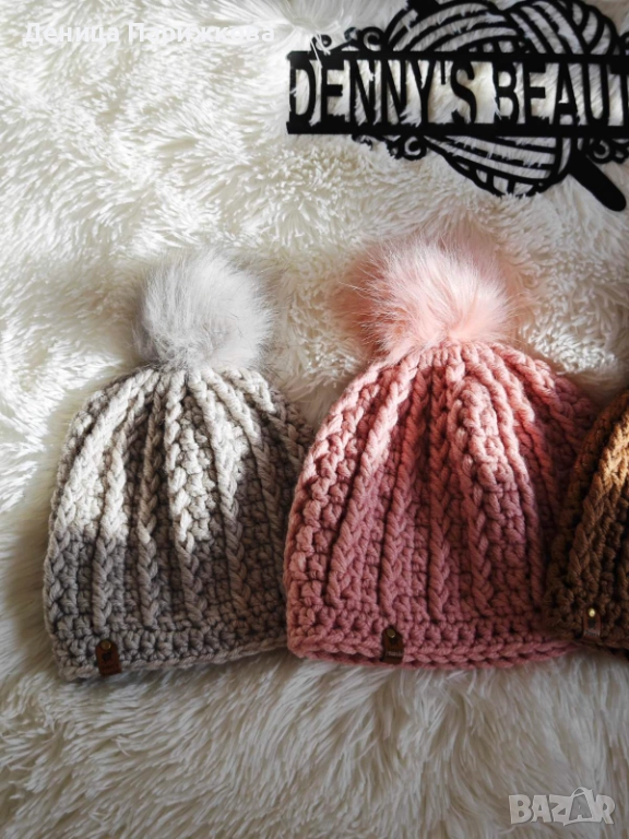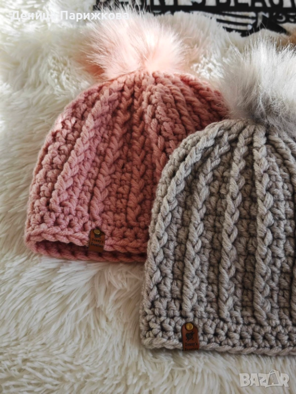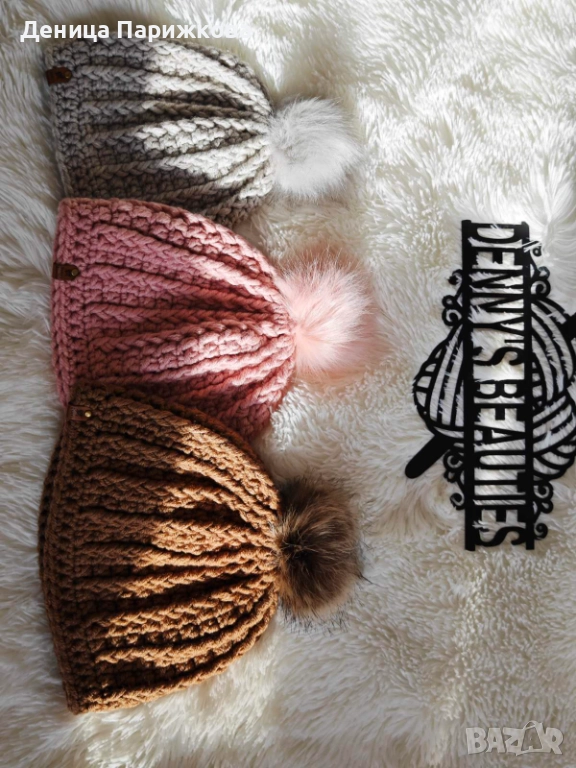 Ръчно плетена шапка „Даниела“ с релефна плетка и подвижен пухкав помпон