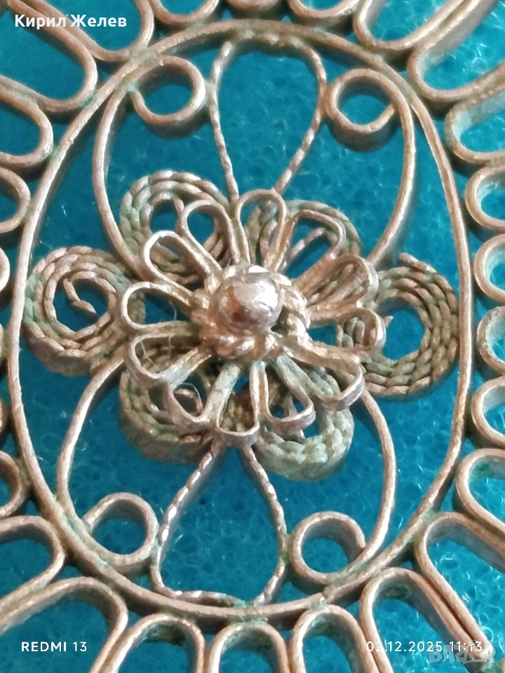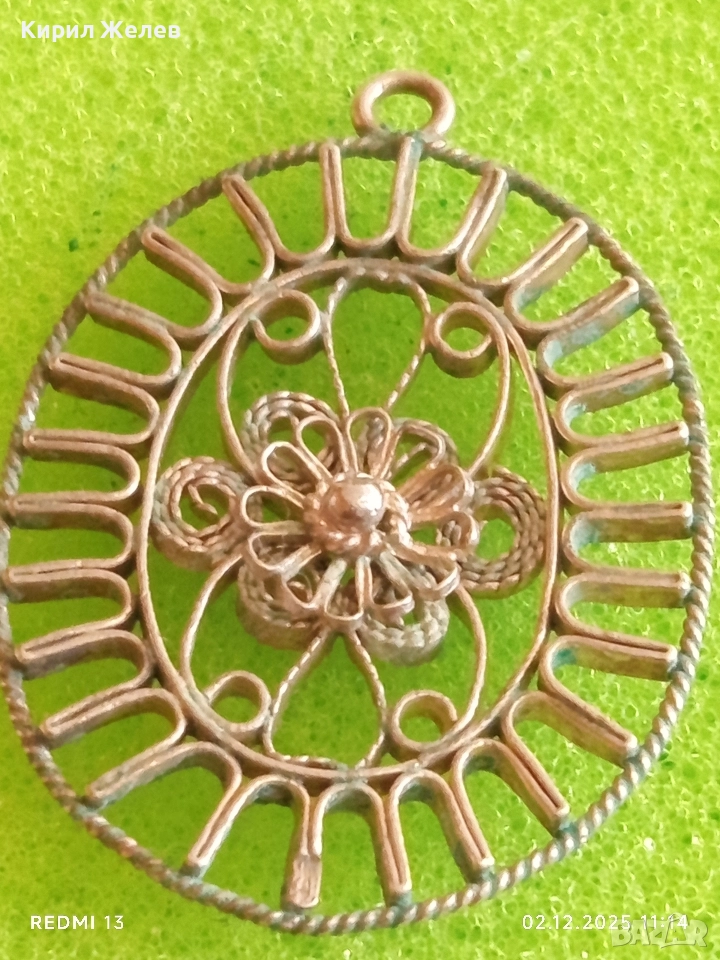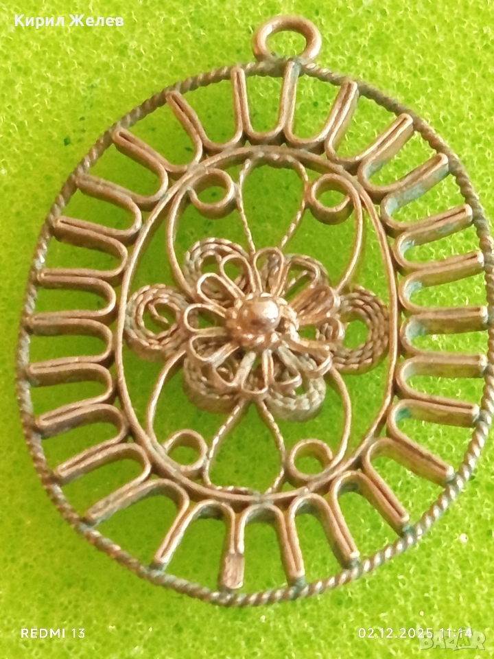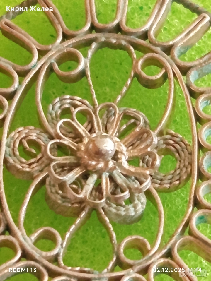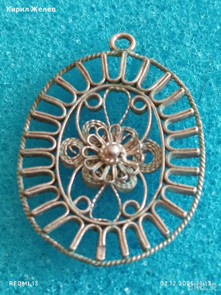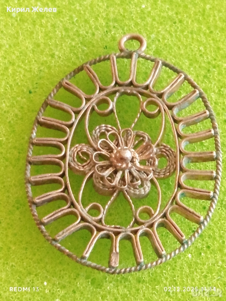 Винтидж сребърна висулка бижутерийна с филигранна изработка рядка 44196