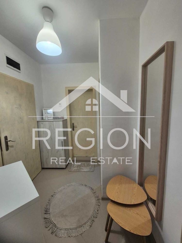 Агенция за недвижими имоти Регион представя на Вашето внимание двустаен с ново ЛУКСОЗНО обзавеждане апартамент, нова кооперация в района на Колхозен пазар. Жилището се състои от дневна с кухненска част напълно оборудвана, детска спалня, баня-тоалет, тераса. Отдава се дългосрочно и е подходящо за работещи, двойка или сам човек. Апартамента се намира в близост до автобусни спирки, детски градини и площадки, хранителни магазини и др. При интерес и повече подробности относно имота може да се обадите на посочените телефони.