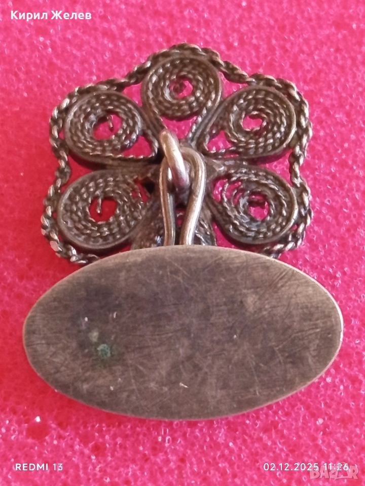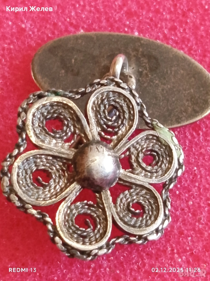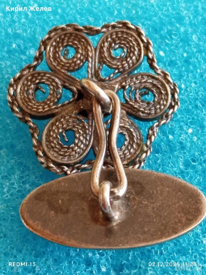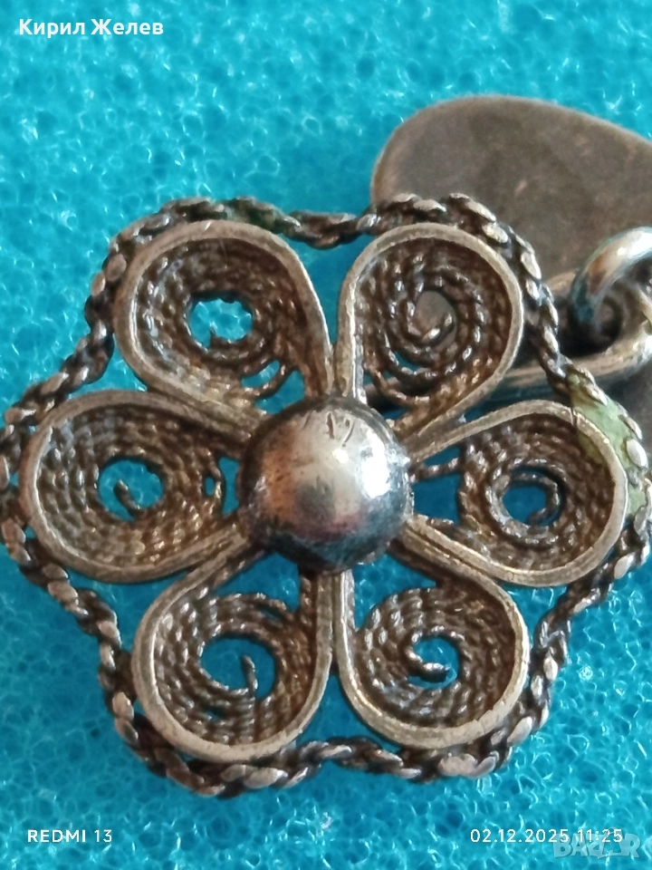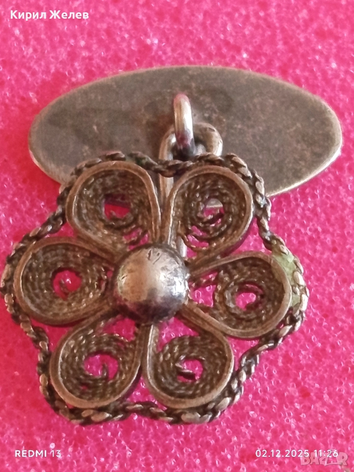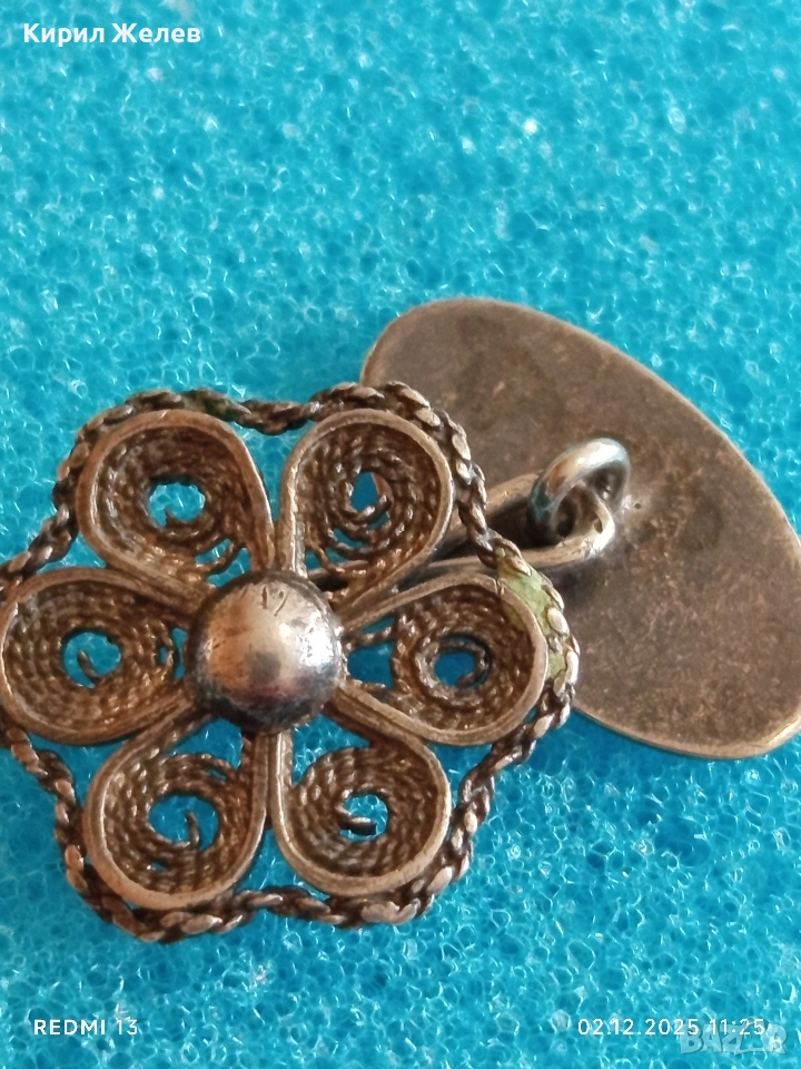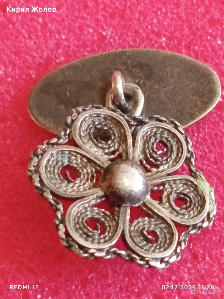 Сребърно ръчно изработено филигранно копче за ръкавели с флорален мотив 17650