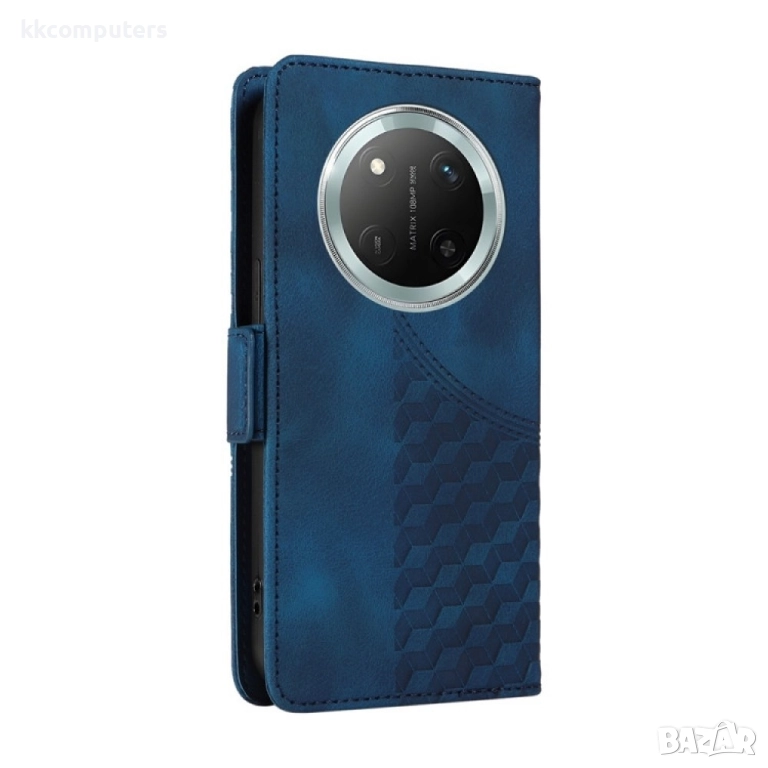 Honor Magic7 Lite 5G Rhombus Texture Magnetic Wallet Кожен Калъф и Протектор