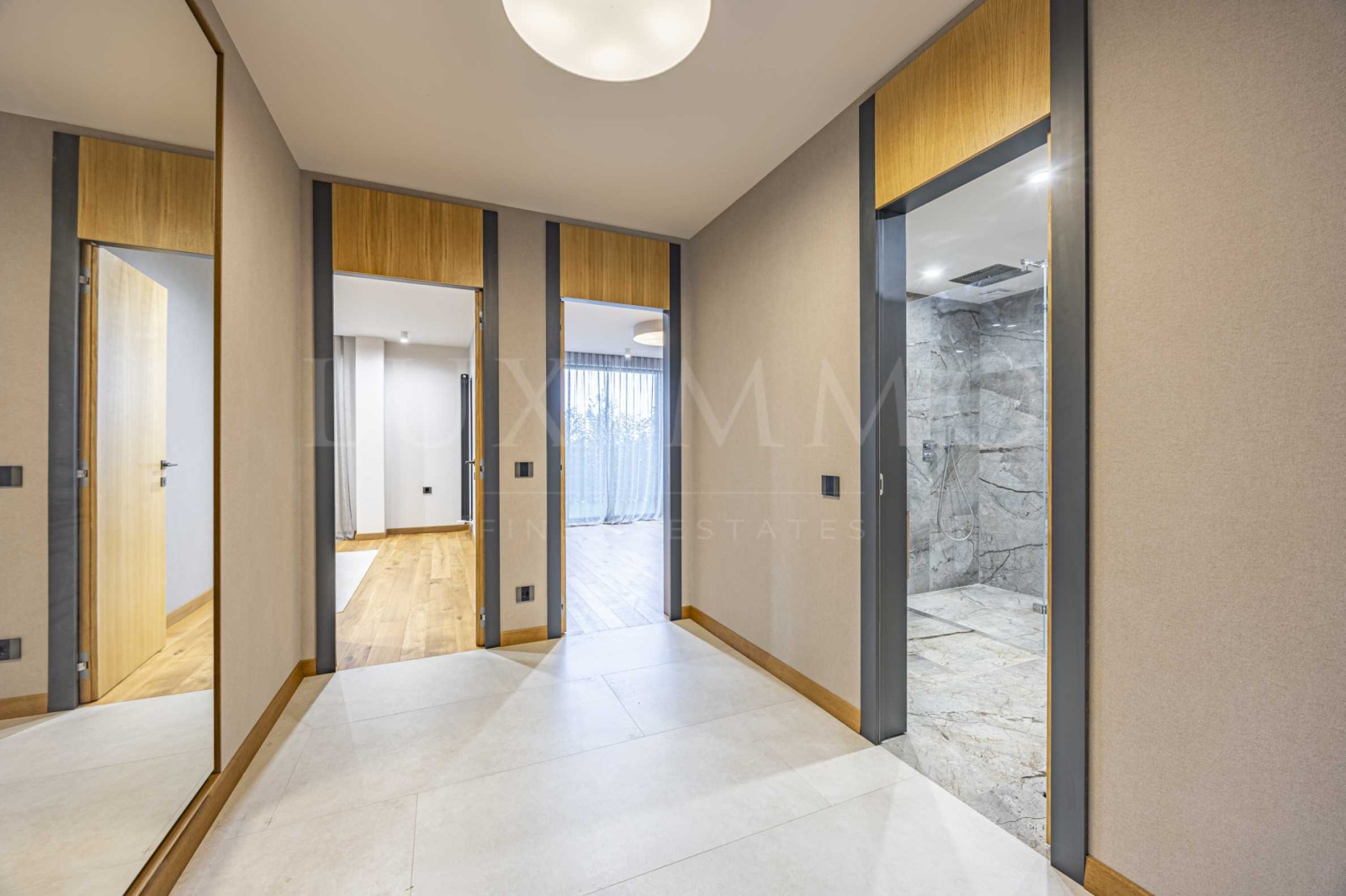 Имотът се намира на партерен етаж и е с обща площ 171.49 кв.м (чиста площ 155.48 кв.м). Интериорът му е дело на SF design и балансира добрия вкус с уют и функционалност. Всяко кътче е оползотворено за максимално удобство, а довършителните работи са изпълнени с най-качествени материали, дизайнерски мебели и безкомпромисна прецизност.