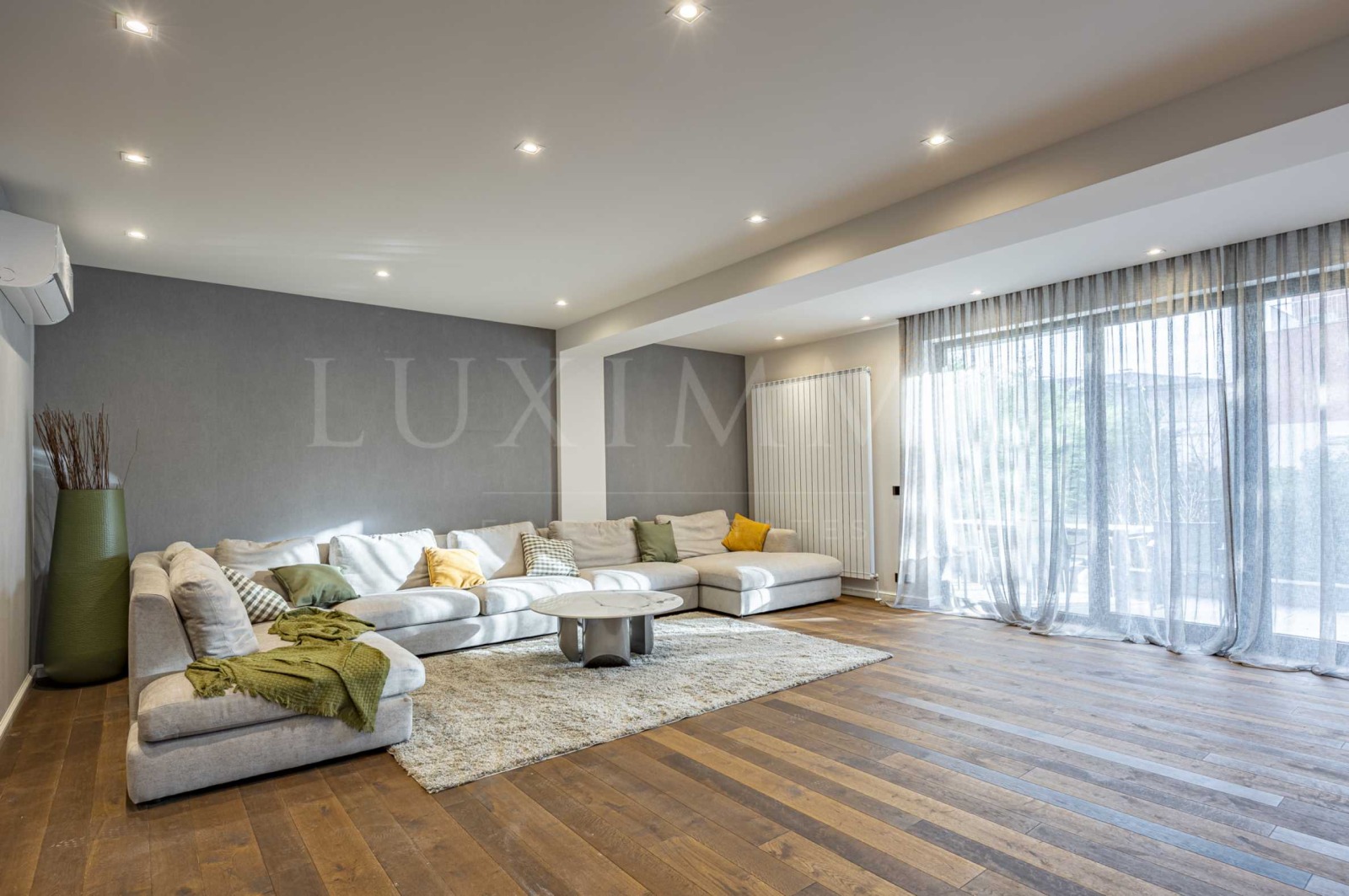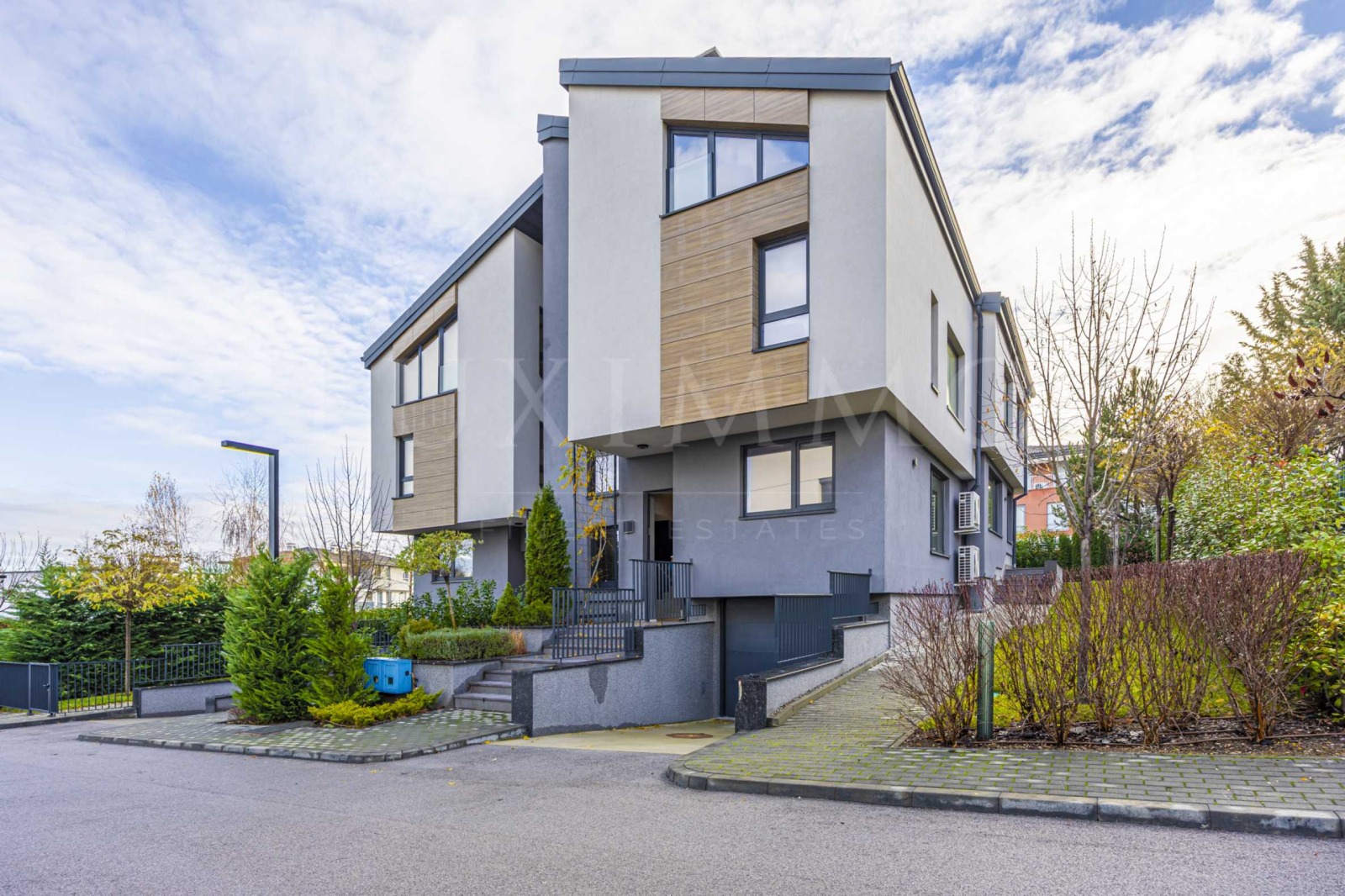 Представяме къща-близнак с двор в нов жилищен комплекс, съчетаващ удобствата на големия град и спокойствието на живота сред природата. Интериорът ѝ е дело на SF design и балансира добрия вкус с уют и функционалност. Всяко кътче в този дом е оползотворено за максимално удобство, а довършителните работи са изпълнени с най-качествени материали, дизайнерски мебели и безкомпромисна прецизност.
