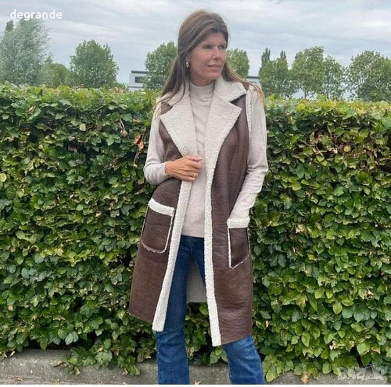 Дълъг кожен елек с каракул → Обява 52624266