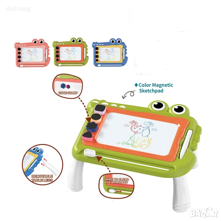 Усъвършенстваната технология прави възможно създаването на цветни рисунки без използването на хартия или бои. Благодарение на магнитната писалка, детето може да изрази своята креативност, като създава различни изображения. И когато нещо се обърка, просто плъзнете плъзгача, за да изчезне всичко и започнете отначало - без бъркотия и без притеснения.
