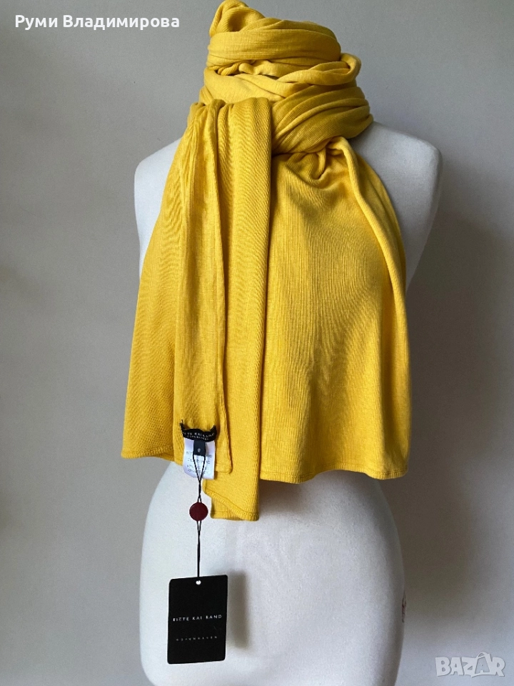 Жълт, голям шал Bitte Kai Rand, с етикет, голям размер, състав 67 % лиоцел и 33 % памук, мека материя, цвят горчица, доставка с Еконт.
