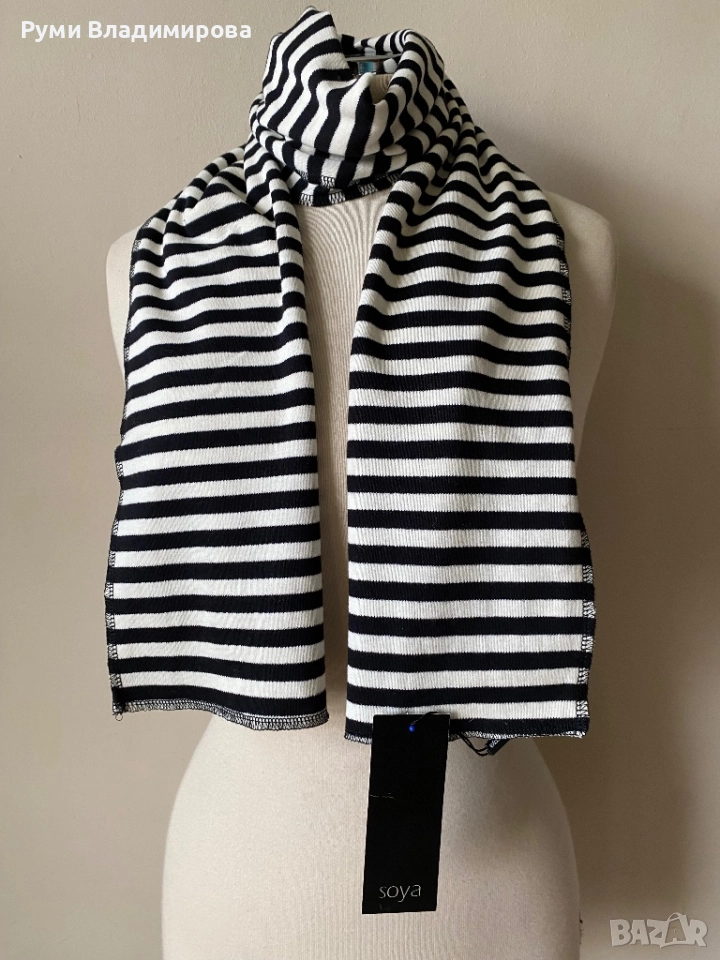 Шал на черно бели райета, Soya, с етикет, 100 % памук, с шев по ръбовете, плътен, ефектен, доставка с Еконт.