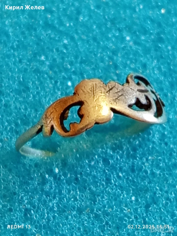 Елегантен сребърен пръстен стил АРТ НУВО майсторска ръчна изработка 52387