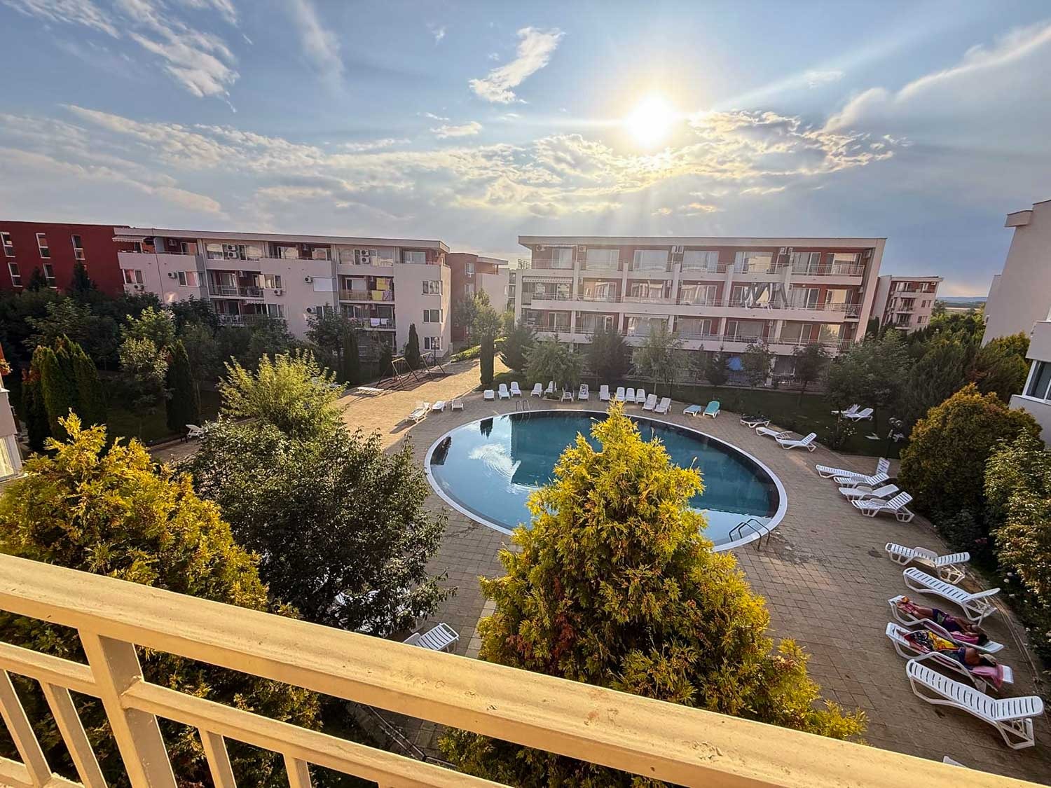 Предлагаме за продажба просторен обзаведен двустаен апартамент в комплекс Несебър Форт Клуб . Комплексът е в непосредствена близост до Action Аквапарк и големия супермаркет ММ. Апартаментът се намира на трети жилищен етаж в четири етажна сграда и е с квадратура 65 кв.м. Разпределение: дневна с кухненски бокс и кът за хранене, зона за отдих, спалня, баня с душ кабина и тоалетна, просторна тераса с гледка към басйна и озеленените площи на комплекса. Апартаментът се продава обзаведен и оборудван. Комплексът предлага комфорт, уют и удобство - басейн с детска секция и водни пързалки, детски площадки, два ресторанта, фитнес и сауна, магазин, бюро за обмяна на валута, изключително добре поддържана и красиво озеленена градина, целогодишна охрана и поддръжка. Комплексът е с много локация, в близост до автобусна спирка, разнообразни магазини и заведения за хранене и развлечения. Акт 16, Разрешение за ползване и битов ток. Апартаментът е изключително подходящ за живеене и отдаване под наем целогодишно.