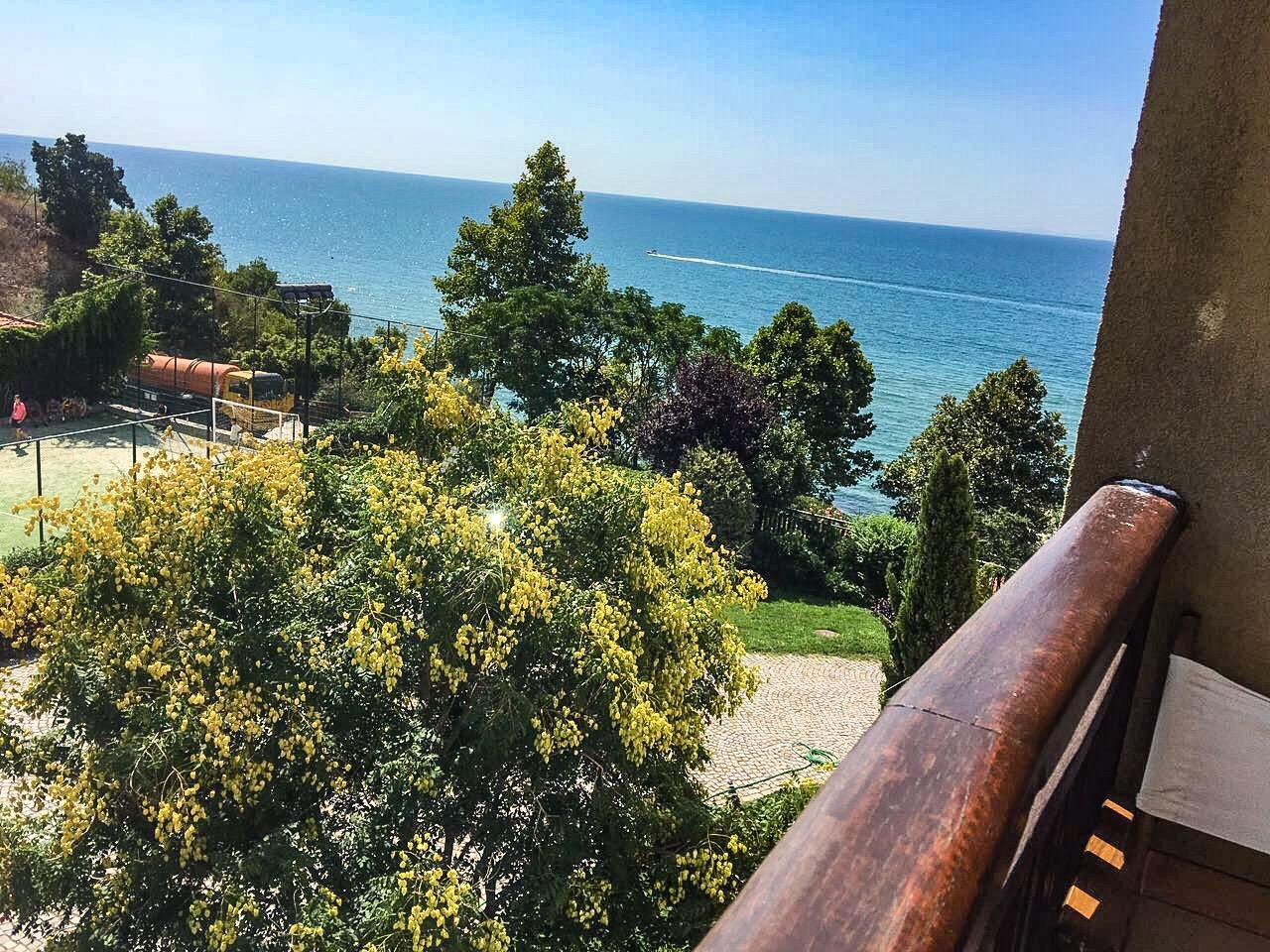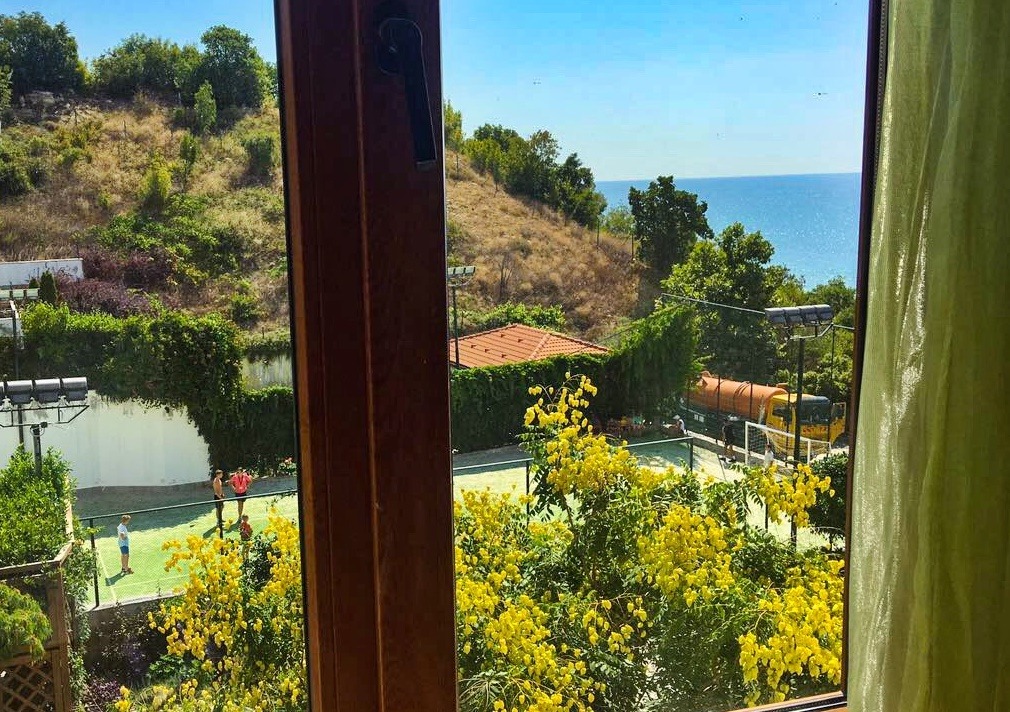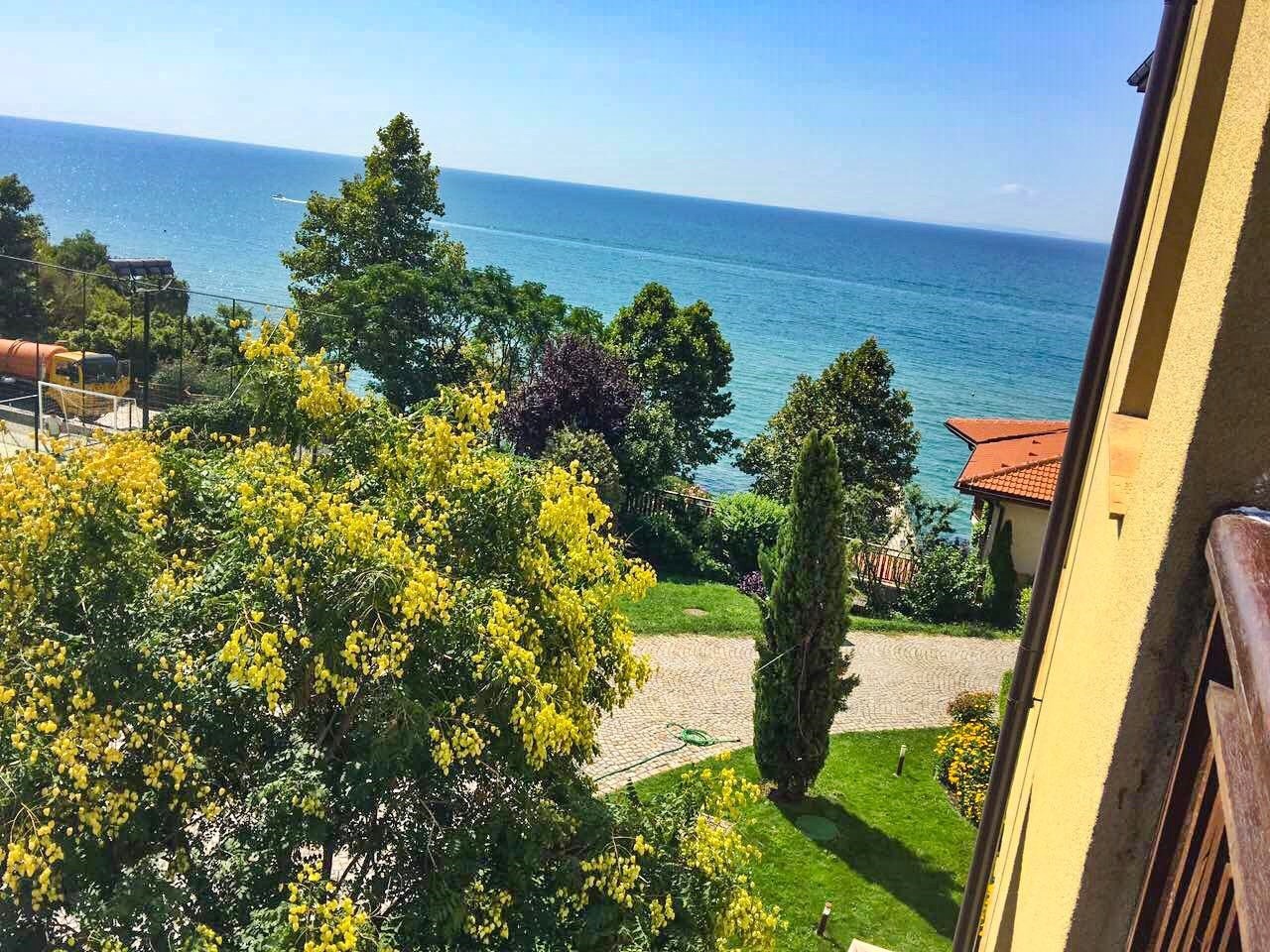 Просторен едностаен уютен апартамент, разположен на първа линия до морския бряг, с гледка към морето и красиво озеленената територия на комплекса, в уникалния комплекс Райска градина . Апартамента е с квадратура 54 кв.м. и се намира нa трети жилищен етаж в сграда с асансьор. Разпределение: дневна с кухненски бокс и трапезарен кът, обособен спален кът, баня с вана и тоалетна, тераса с красива морска панорамна гледка. Апартамента се продава напълно обзаведен и оборудван. Комплексът разполага със собствен плаж, намира се на около 450 метра от яхтено пристанище ,, Марина Диневи и е построен в изключително атрактивен стил. Разполага със седем открити басейна, СПА център със закрит басейн, фитнес център, сауна, турска баня, джакузи, масаж, зона за релакс, спортни площадки за тенис и футбол, детски площадка, ресторанти, бар, собствен плаж, паркова зона с красиво озеленени зелени площи, паркинг. Акт 16 и битов ток. Целогодишното обслужване и поддръжка на комплекса, непосредствено му близост до плажа и яхтено пристанище, го прави изключително атрактивен за живеене и отдаване под наем целогодишно.