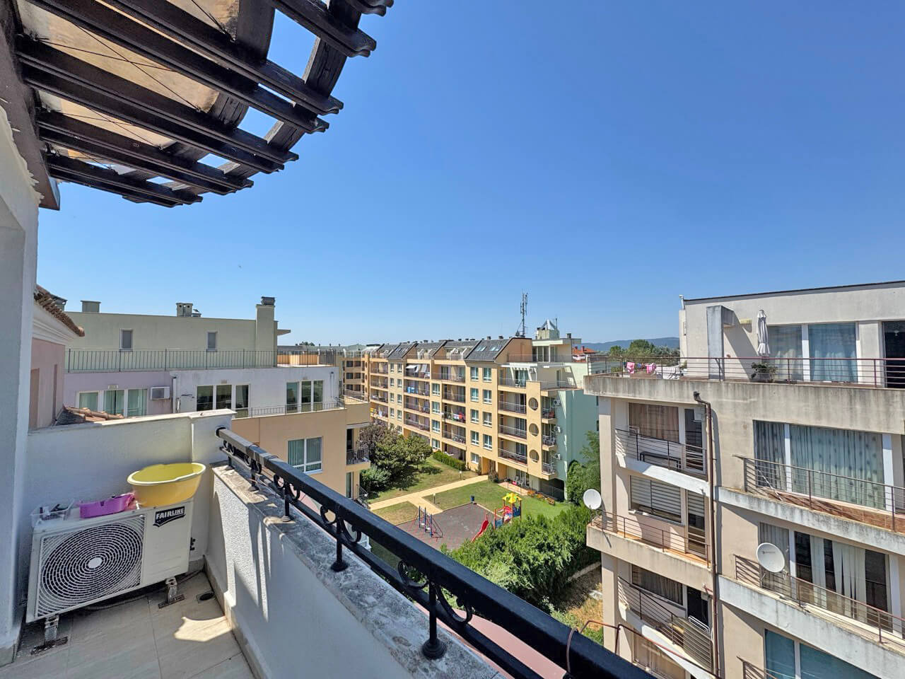 Предлагаме за продажба стилно обзаведен двустаен апартамент в южната част на комплекса, в комплекс Романс Марин . Комплексът е разположен в южната част на Слънчев бряг, в тих и спокоен район, на 300м. от морето и от просторния плаж Какао Бийч . Апартаментът се намира на шести последен жилищен етаж в сграда с асансьор и е с квадратура 48 кв. м. Разпределение: дневна с кухненски бокс и кът за хранене, зона за отдих, спалня, баня с душ кабина и тоалетна, просторна тераса. Продава се обзаведен и оборудван. Комплексът е разположен в тих и спокоен район, предлага комфорт, уют и удобство. На разположение на собствениците и гости на комплекса са: два плувен басейн с детска секция, фитнес, спа център, салон за красота, детска площадка, ресторант, красиво озеленени и добре поддържани градини и общи части, целогодишна охрана и поддръжка. Добре изградена инфраструктура на района - разнообразни магазини и заведения за хранене, супермаркет, редовен транспорт, автобусна спирка. Акт 16 и разрешение за ползване, битов ток. Предназначение: за живеене или отдаване под наем целогодишно.