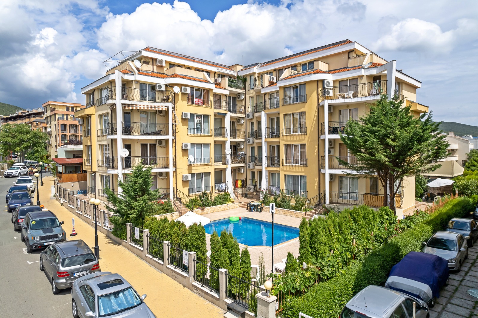 Предлагаме за продажба обзаведен тристаен апартамент намиращ се в комплекс Сънсет , разположен на втора линия от морският бряг, на около 100 метра от централния плаж на Свети Влас Апартаментът е с квадратура 77 кв.м., намира на първи партерен етаж в сграда с асансьор. Разпределение: просторна дневна с кухненски бокс и кът за хранене, зона за отдих, две спални, коридор, баня с душ кабина и тоалетна, две тераси с гледка към басейна. Апартаментът се продава напълно обзаведен и оборудван. Комплексът е с много добра локация, в непосредствена близост до плажа, автобусна спирка, разнообразни магазини и заведения за хранене и развлечения. Акт 16 и отделна партида за битов ток към EVN. Апартаментът е изключително подходящ за живеене и отдаване под наем целогодишно.