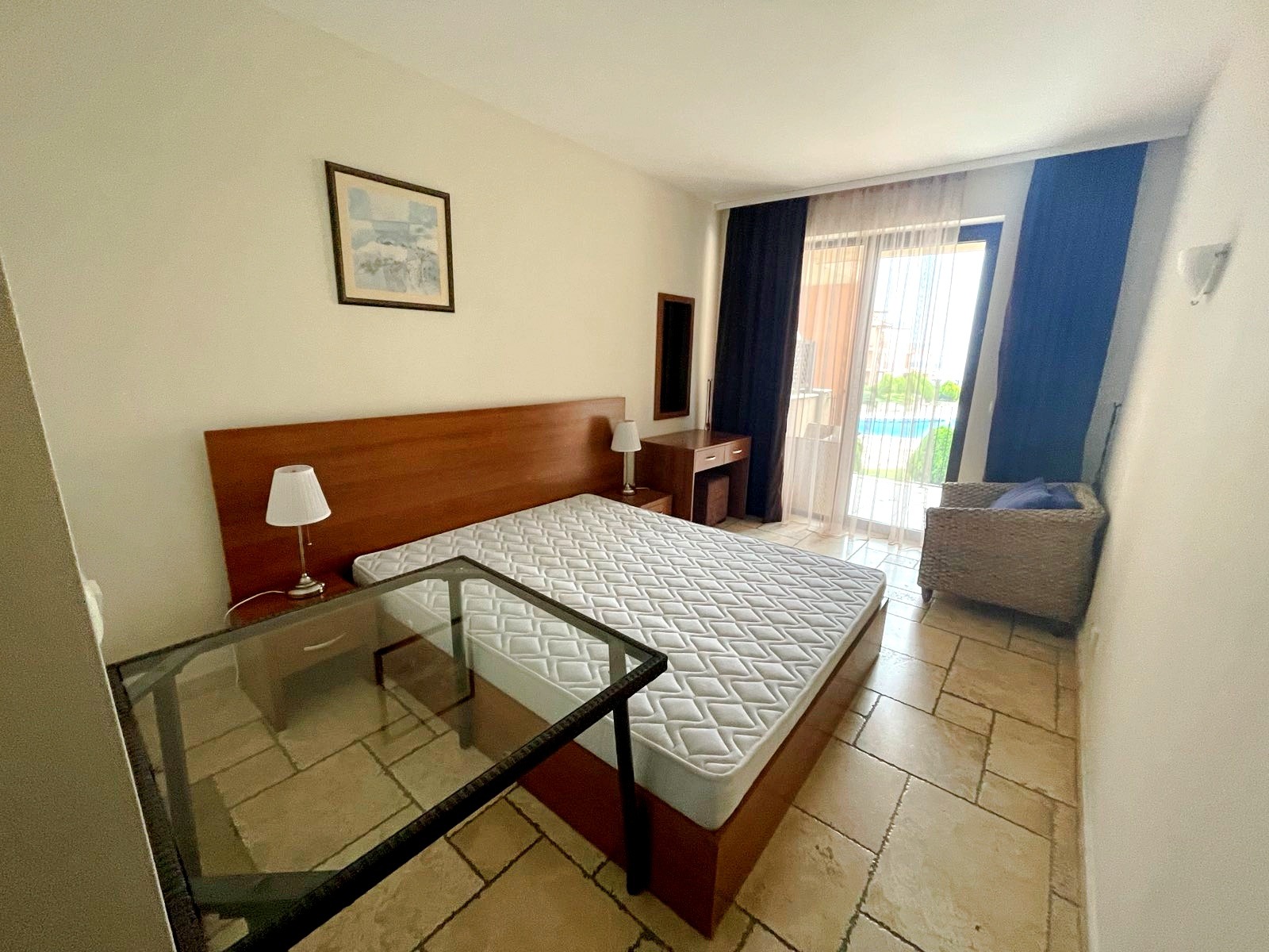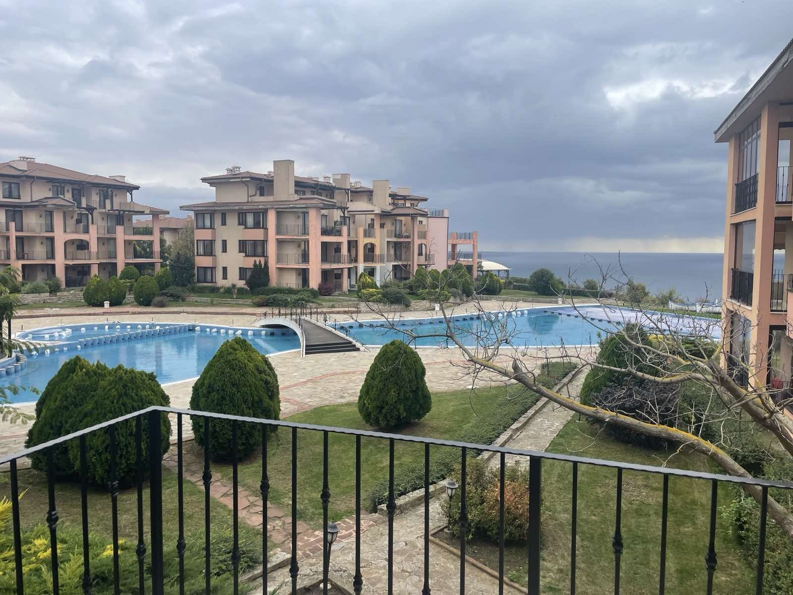 Удобства: открити басейни с детска секция и шезлонги, 3 ресторанта, 2 бара, бийч бар, отлично поддържана просторна озеленена територия, детски кът с анимация, фитнес център, масажен кабинет, СПА център, транспорт до плажа, конферентна зала, рецепция, паркинг. Комплексът е с целогодишно управление - денонощна охрана, видеонаблюдение, почистване, техническа поддръжка. ограничен достъп. С Акт 16, битов ток и отделни партиди за ток и вода. Апартаментът е изключително подходящ за живеене и отдаване под наем целогодишно.