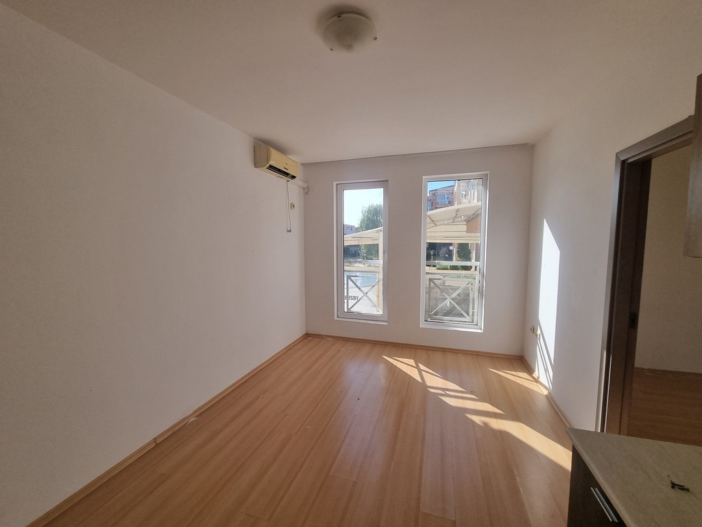 Предлагаме за продажба необзаведен двустаен апартамент в комплекс Sunny Dаy 6 , разположен в тих и спокоен район, на 3 км от центъра на курорта Слънчев бряг. Апартамента е с площ от 41 кв.м. и се намира на първи партерен етаж от четириетажна сграда без асансьор. Разпределение: дневна с кухненски бокс, спалня, баня с душ и тоалетна, тераса с изглед към озеленената територия на комплекса. Комплексът предлага открити плувни басейни, бар, детска площадка, ресторант, магазин, добре поддържани зелени градини, тенис корт, охраняеми паркоместа. Комплексът е с целогодишно управление, денонощна охрана, видеонаблюдение, почистване, техническа поддръжка, ограничен достъп. Апартаментът е изключително подходящ за живеене и отдаване под наем целогодишно.