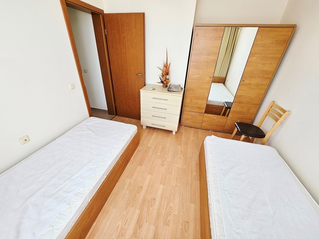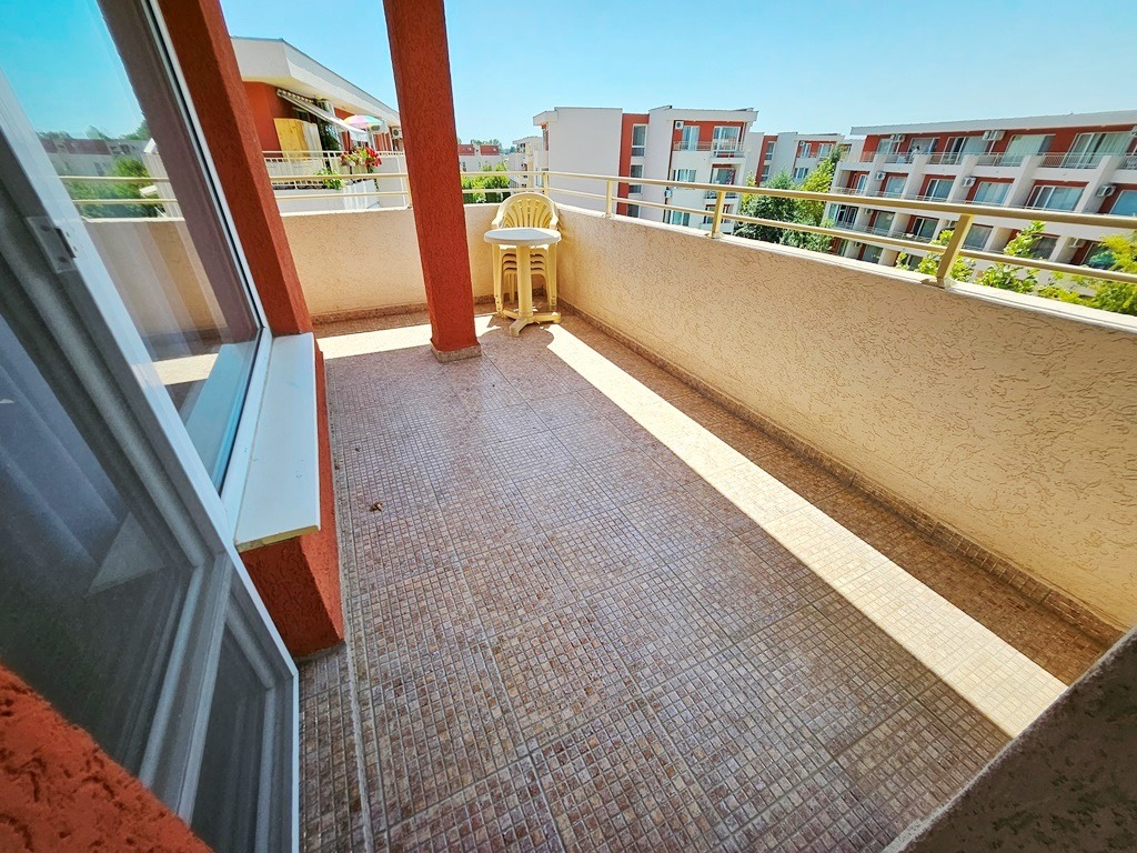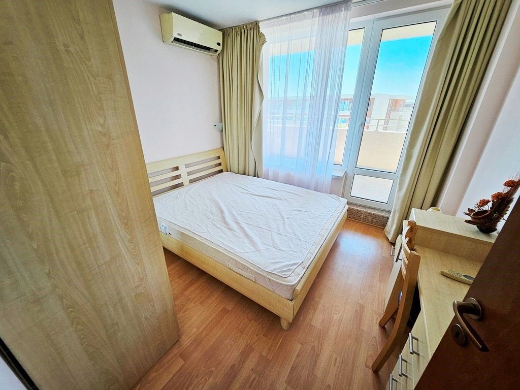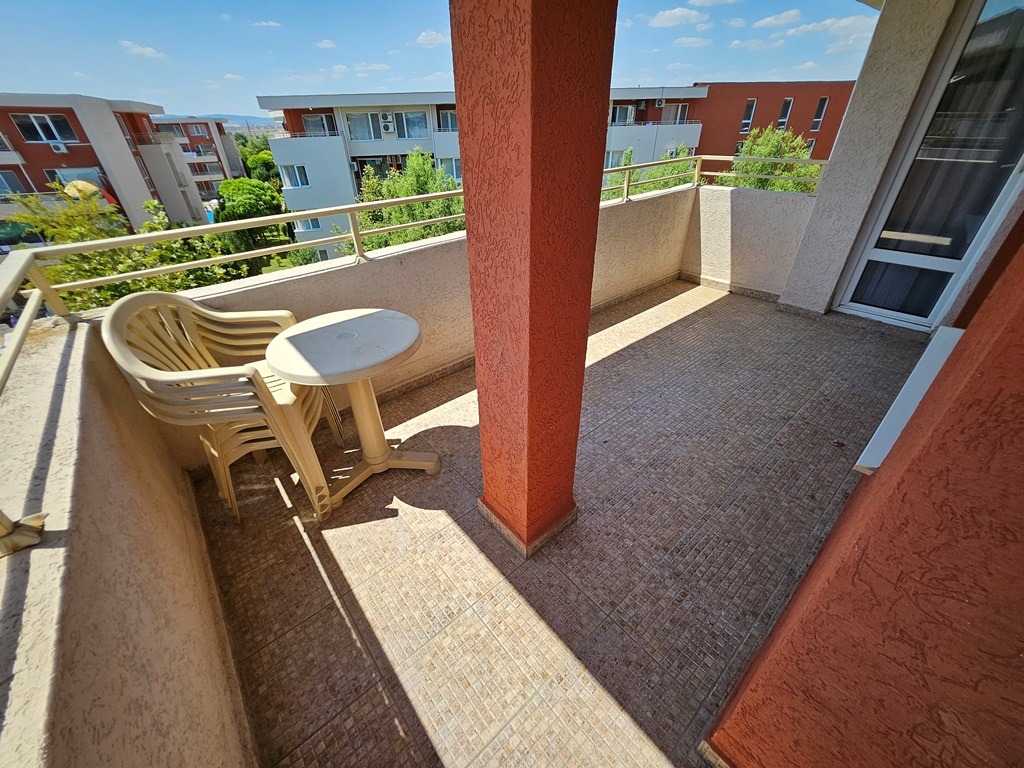 Предлагаме за продажба обзаведен тристаен апартамент в комплекс Несебър Форт . Комплексът е в непосредствена близост до Action Аквапарк и големия супермаркет ММ. Апартаментът се намира на четвърти последен жилищен етаж и е с квадратура 86 кв.м. Разпределение: просторн дневна с кухненски бокс и кът за хранене, зона за отдих, две спални, баня с душ кабина и тоалетна, отделна тоалетна, просторна тераса с гледка към басейна. Апартаментът се продава обзаведен и оборудван. Комплексът предлага комфорт, уют и удобство - басейн с детска секция и водни пързалки, детски площадки, два ресторанта, фитнес и сауна, магазин, бюро за обмяна на валута, изключително добре поддържана и красиво озеленена градина, целогодишна охрана и поддръжка. Комплексът е с много локация, в близост до автобусна спирка, разнообразни магазини и заведения за хранене и развлечения. Акт 16 и Разрешение за ползване. Апартаментът е изключително подходящ за живеене и отдаване под наем целогодишно