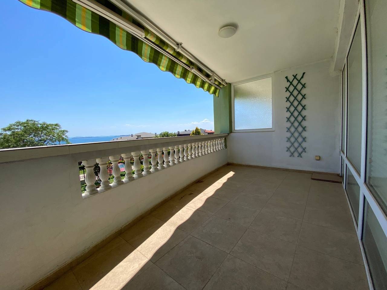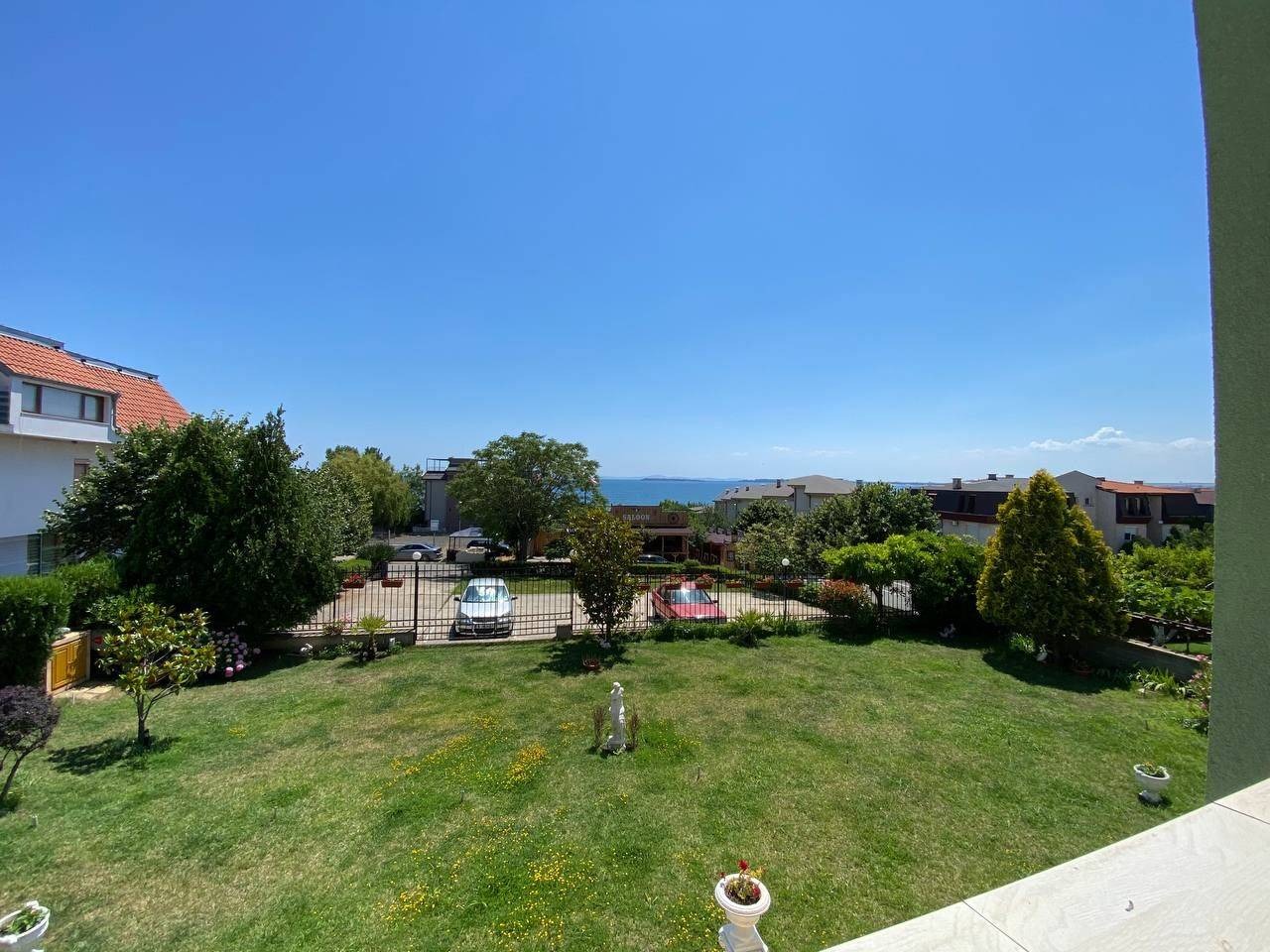 Предлагаме за продажба просторен обзаведен тристаен апартамент с прекрасна фронтална гледка към морето, в близост до плажа, намиращ се в жилищна сграда без такса поддръжка в гр. Свети Влас. Апартаментът се намира на първи жилищен етаж в нова, добре поддържана пет етажна сграда, с красиво озеленена просторна градинска площ, и е с квадратура 104 кв.м. Разпределение: просторен хол, отделна кухня с трапезария, 2 спални, коридор, баня с душ кабина и тоалетна, отделна тоалетна, просторна тераса с красива гледка към морето. Апартаментът се продава напълно обзаведен и оборудван. Сградата се намира в тих и спокоен район в близост до морето. Много добра локация, в близост до автобусна спирка, целогодишно работещи разнообразни магазини и заведения.. Акт 16. Апартаментът е изключително подходящ за живеене и отдаване под наем целогодишно.