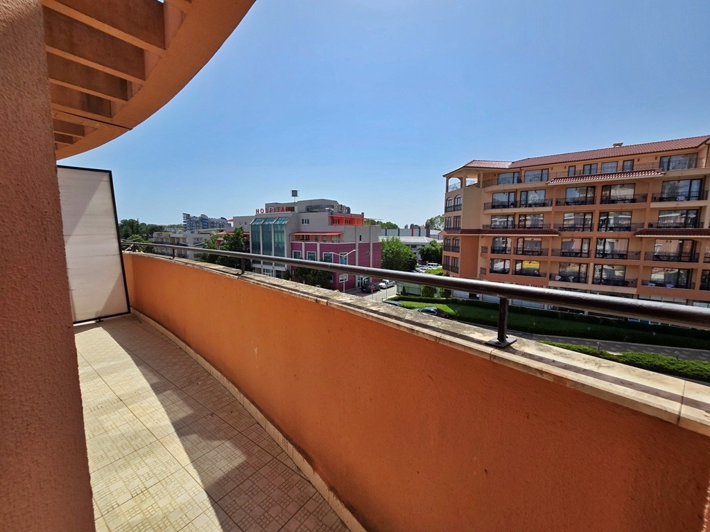 Предлагаме за продажба просторен тристаен апартамент с ниска такса поддръжка в комплекс Аквамарин . Комплексът е разположен в южната част на Слънчев бряг, на 150 м. от плажната ивица. Апартаментът се намира на трети етаж в сграда без асансьор и е с квадратура 90 кв.м. Имотът се състои от коридор, просторна дневна с кухненски кът, две спални, две бани с тоалетна, две тераси. Жилището се продава напълно оборудвано с мебели и техника. Комплексът е в непосредствена близост до морето и на пешеходно разстояние от Несебър. За удобствата на собствениците и гостите са предвидени на територията на комплекса : басейн с детска секция, зона за отдих с шезлонги и чадъри, паркинг. Имотът е подходящ за лятна почивка и инвестиция или за целогодишно живеене. таксата поддръжка е 7 евро на м2. В близост има супермаркет, много търговски обекти и разнообразни заведения за хранене и развлечение, автобусна спирка. Акт 16.
