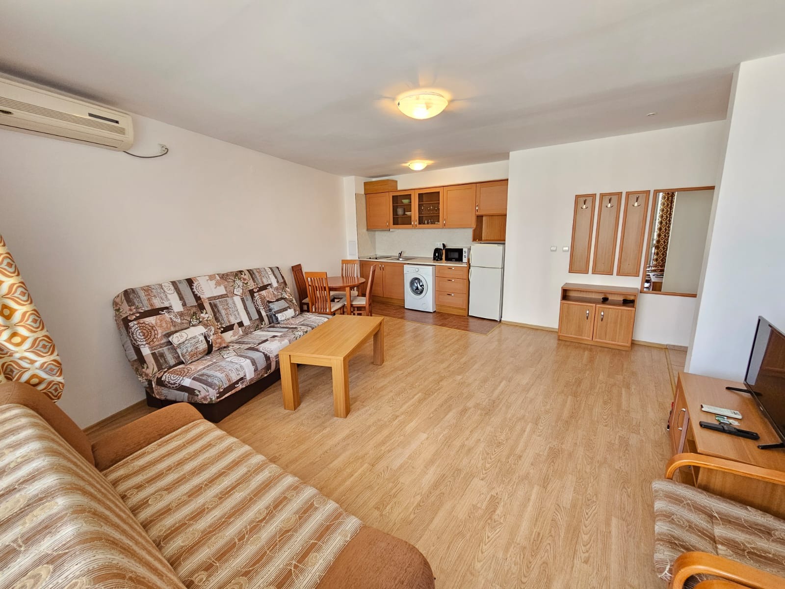 Предлагаме за продажба просторен обзаведен двустаен апартамент на първа линия море в комплекс Ривиера Форт Бийч . Комплексът се намира на брега на морето, на 300 метра от центъра на Равда. Апартаментът се намира на втори жилищен етаж в шест етажна сграда с асансьор, и е с квадратура 79 кв.м. Разпределение: дневна с кухненски бокс и кът за хранене, зона за отдих, спалня, баня с душ и тоалетна, тераса с гледка към басейна. Апартаментът се продава обзаведен и оборудван. Комплексът предлага комфорт, уют и удобство красив басейн с детска секция, детска площадка, тенис корт, футболно игрище и охраняем паркинг, целогодишна охрана и поддръжка. Комплексът е с много добра локация, на метри от плажа, в близост до центъра на курортното селище, автобусна спирка, разнообразни магазини и заведения за хранене и развлечения. Акт 16. Апартаментът е изключително подходящ за живеене и отдаване под наем целогодишно