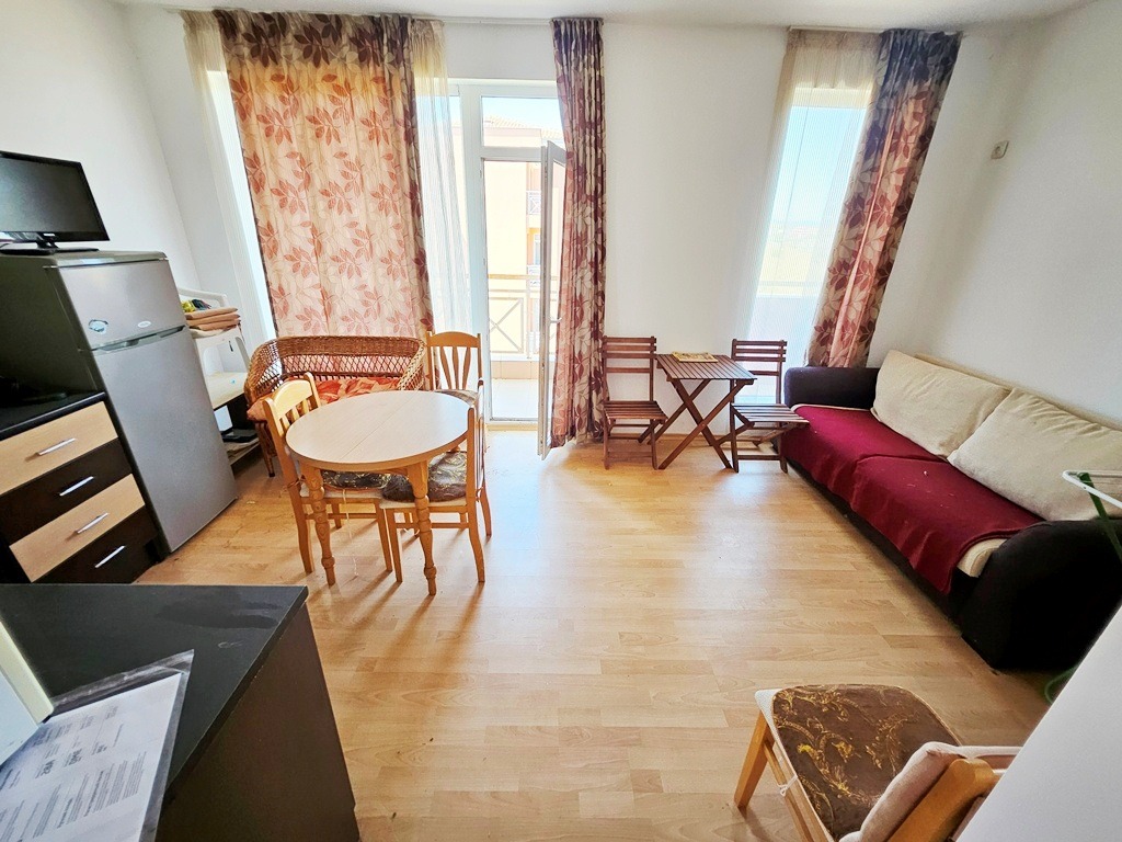 Предлагаме за продажба обзаведен двустаен апартамент в комплекс Sunny Dаy 6 , разположен в тих и спокоен район, на 3 км от центъра на курорта Слънчев бряг. Апартамента е с площ от 58 кв.м. и се намира на четвърти жилищен етаж в сграда без асансьор. Разпределение: дневна с кухненски бокс и кът за хранене, зона за отдих, спалня, баня с душ и тоалетна, просторна тераса. Комплексът предлага открити плувни басейни, бар, детска площадка, ресторант, магазин, добре поддържани зелени градини, тенис корт, охрняеми паркоместа. Комплексът е с целогодишно управление , денонощна охрана, видеонаблюдение, почистване, техническа поддръжка,ограничен достъп. Апартаментът е изключително подходящ за живеене и отдавне под наем целогодишно.