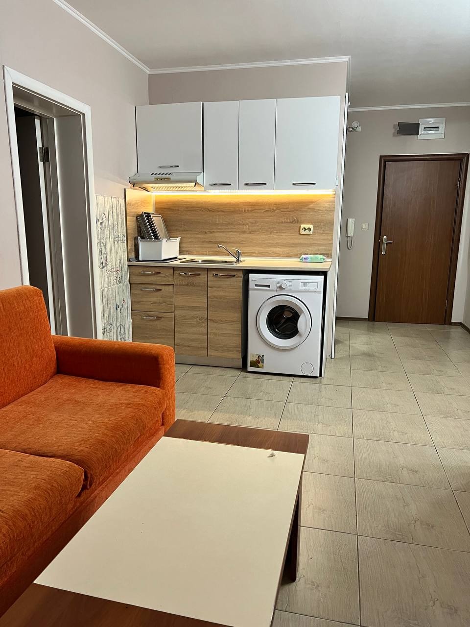 Предлагаме за продажба обзаведен двустаен апартамент в центъра на курортния комплекс, в близост до р-т Джани и х-л Кубан в комплекс Orange . Апартаментът е разположен на първи партерен етаж и е с квадратура 51 кв.м. Разпределение: дневна с кухненски бокс и зона за отдих, спалня, баня с вана и тоалетна, тераса. Удобства: басейн с детска секция, красиво озеленени и добре подържани общи площи, детска площадка, охраняем паркинг, целогодишна охрана и поддръжка. Комплекс Orange е разположен на спокойно и тихо място в центъра на курортния комплекс , на 5 минути пешеходно разстояние от плажа и централната пешеходна алея, в близост до полиция, поликлиника, автобусна спирка, аптеки, централния пазар. В район с много и разнообразни магазини, банки, голям супермаркет и заведения. Жилището е обзаведено с нови мебели и готово за нанасяне или за отдаване под наем. Акт 16.