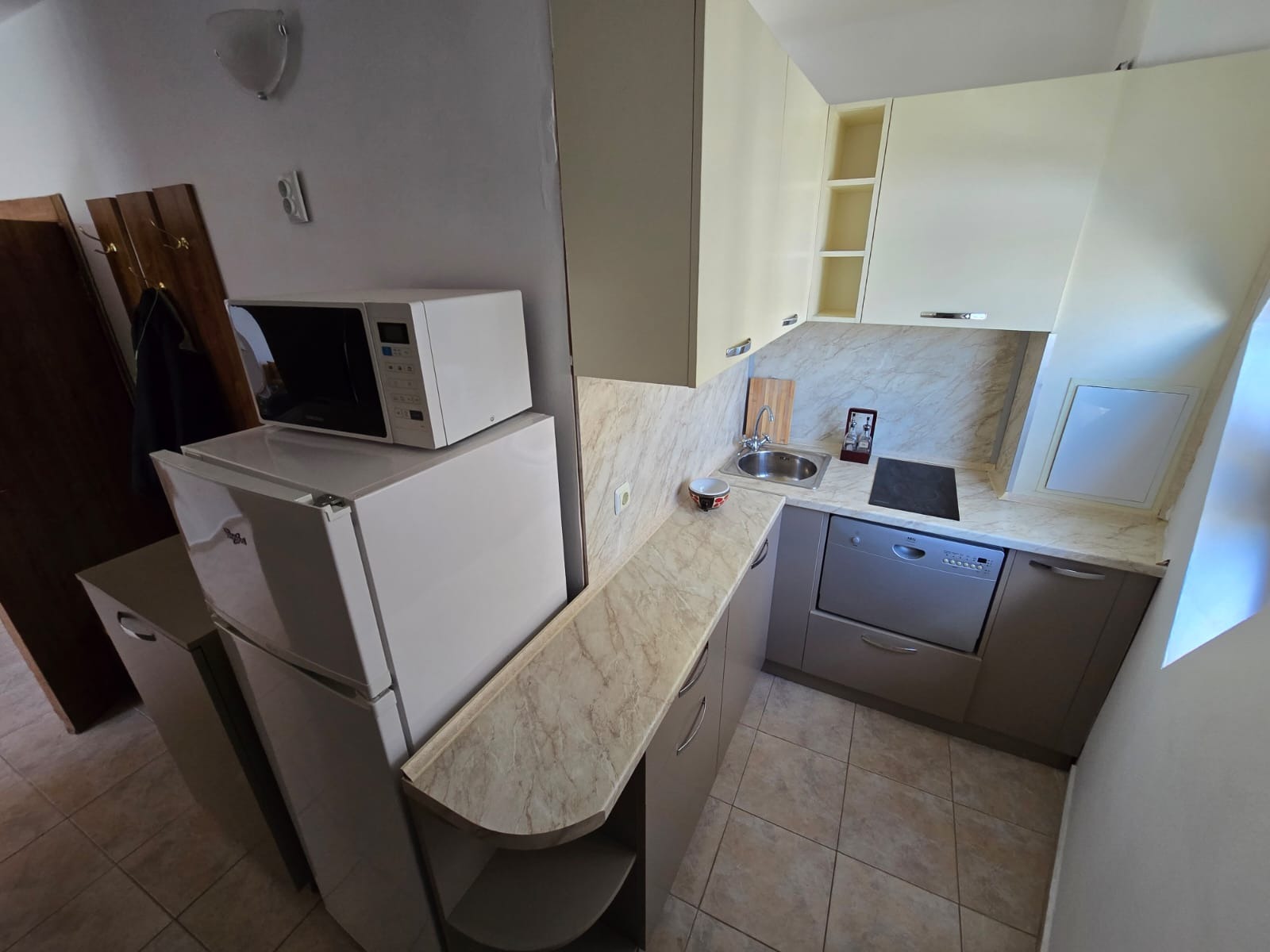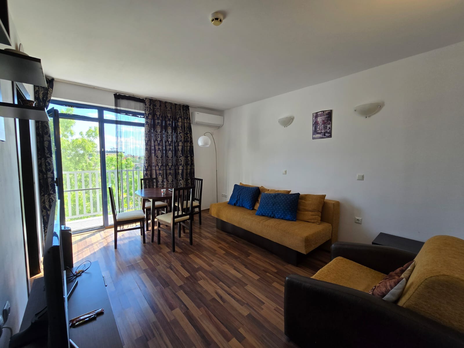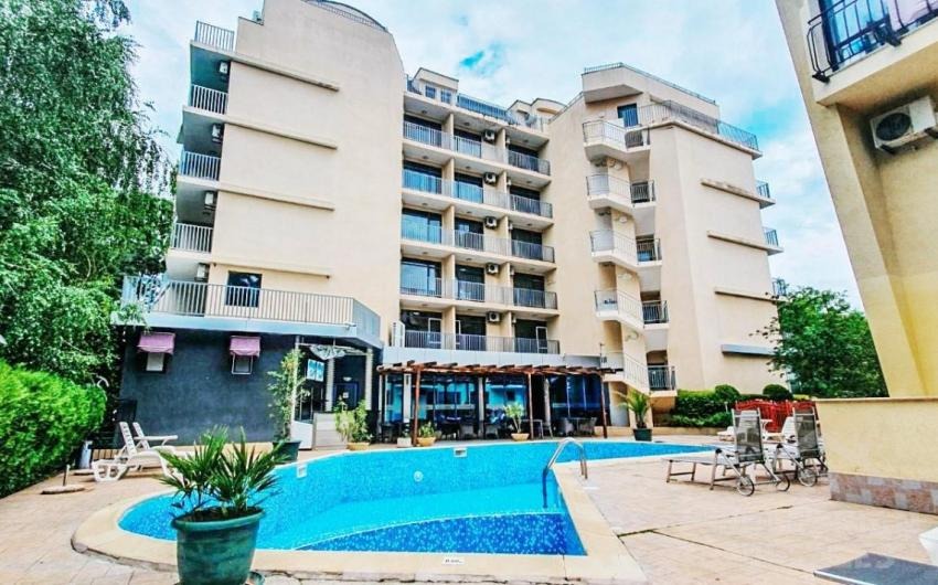 Предлагаме за продажба обзаведен двустаен апартамент с частична гледка към морето в идеалния център на Слънчев бряг, в к-с Сапфир , разположен в непосредствена близост до централната пешеходна зона пред х-л Кубан, на около 200 метра от плажа. Апартаментът се намира на шести жилищен етаж и е с квадратура 63 кв.м. Разпределение: дневна с кът за хранене и зона за отдих, отделена кухня, спалня, баня с душ кабина и тоалетна, тераса с частична гледка към морето. Комплексът предлага уют и удобство - басейн с шезлонги, просторна и добре поддържана територия, целогодишна охрана и поддръжка, видеонаблюдение, контрол на достъпа, паркинг. Около комплекса има добре изградена инфраструктура: супермаркети, магазини, банки, поликлиника, аптека, спирка на автобуса, заведения, плаж, увеселителен парк и други развлечения. Акт 16 и битов ток. Апартаментът е изключително подходящ за живеене и отдаване под наем целогодишно.