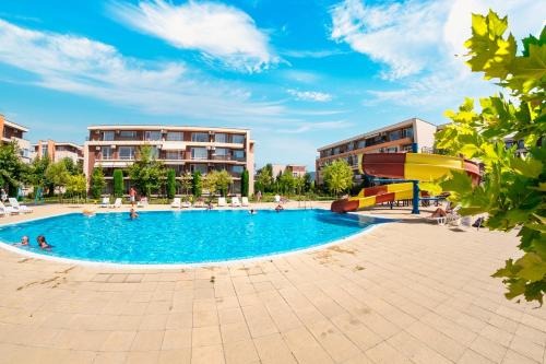 Предлагаме просторен едностаен обзаведен апартамент в комплекс Орхидея Форт Гардън в к.к. Слънчев бряг., разположен на около 10 минути пешеходно разстояние от плажа. Апартаментът се намира на втори жилищен етаж в четириетажна сграда без асансьор и е с квадратура 40 кв.м. Разпределение: антре, дневна с кухненски бокс и зона за отдих с разтегателен диван, баня с душ кабина и тоалетна, просторна тераса с гледка към красиво озеленената площ на комплекса. Апартаментът се продава обзаведен и оборудван. Удобства: просторна добре поддържана и красиво озеленена територия на комплекса, 3 басейна с детска секция и шезлонги, ресторанти, аквапарк, фитнес, детски площадки, билярд, голф игрище, няколко тенис корта, СПА център, обменно бюро, магазини, параклис, денонощна охрана и поддръжка, паркинг. Акт 16. Около комплекса има добре изградена инфраструктура магазини, ресторанти, аптека, банки, поликлиника, аквапарк. С възможност за разсрочено плащане. Апартаментът е изключително подходящ за живеене и отдаване под наем целогодишно.