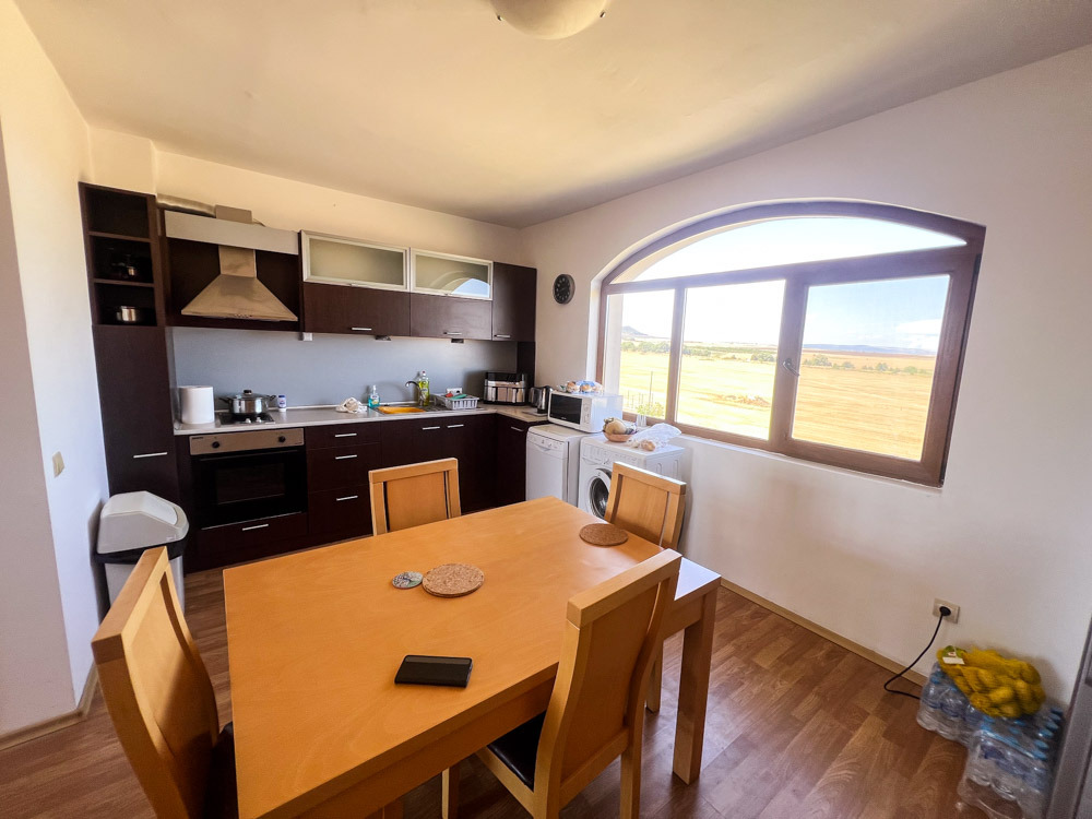 Предлагаме за продажба обзаведен тристаен мезонет на два етажа с гледка към морето в четиризвездния комплекс Вайнярдс Ресорт . Апартаментът е разположен на пети жилищен етаж и е с площ от 98 кв.м. Разпределение: първи етаж - просторна дневна със зона за отдих, кухня с кът за хранене, баня с душ и тоалетна, просторна тераса с барбекю и с изглед към морето; втори етаж 2 спални, баня с тоалетна, просторна тераса с гледка към морето. Жилището се продава напълно обзаведено и оборудвано. Комплекс Виниярдс Ресорт се намира на изключително тихо и спокойно място, на 1 км от плажа и морето на Ахелой. Разполага с просторна, добре поддържана и красиво озеленена територия с 2 външни басейна, вътрешен басейн и СПА център, рецепция, ресторант, детски площадки, лоби бар, пиано бар, паркинг, целогодишна охрана и поддръжка. Акт 16. Апартаментът е изключително подходящ за живеене и отдаване под наем целогодишно.