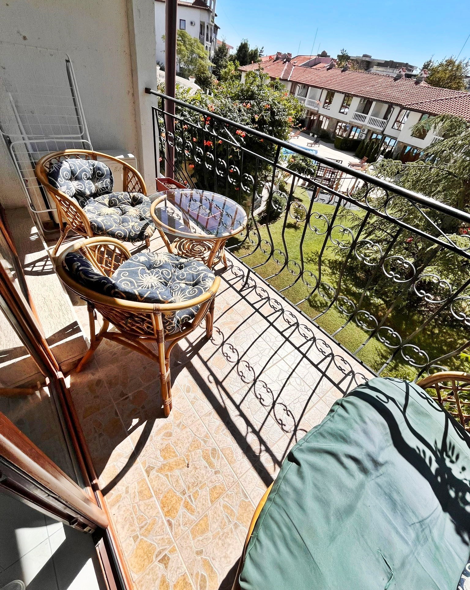 Предлагаме за продажба просторен тристаен апартамент в комплекс Триумф , разположен на втора линия на морския бряг, пред плажа и яхтеното пристанище Марина Диневи , което е само на 200 метра от комплекса. Апартаментът се намира втори жилищен етаж в нова, добре поддържана шест етажна сграда, с красиво озеленена просторна градинска площ, и е с квадратура 82 кв.м. Разпределение: просторна дневна с кухненски бокс, две спални, баня с вана и тоалетна и отделно втора тоалетна, две тераси, едната с източно изложение с излаз от двете стаи и изглед към басейна. Апартаментът се продава напълно обзаведен и оборудван. Комплексът предлага собствен паркинг, два плувни басейна - детски и голям плувен басейн, разкошна градина с добре поддържани тревни площи, детска площадка, целогодишна денонощна охрана. Изключително добра локация, в близост до автобусна спирка, целогодишно работещи разнообразни магазини и заведения. Индивидуална партида за ток към EVN. Акт 16. Апартаментът е изключително подходящ за живеене и отдаване под наем целогодишно.