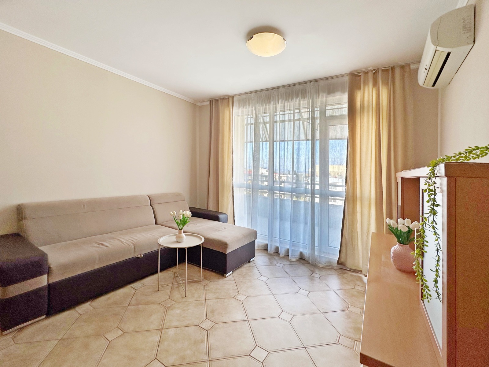 Апартаментът е изключително подходящ за живеене и отдаване под наем целогодишно.