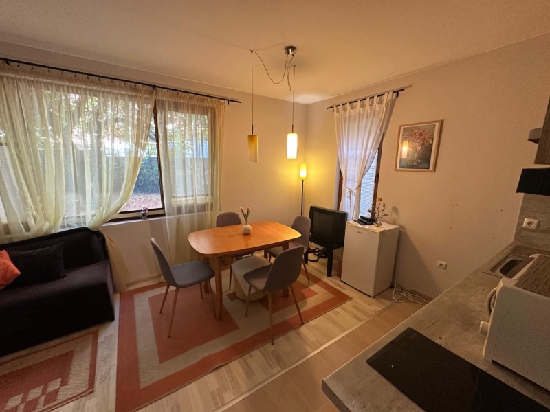 без такса поддръжка, разположена в тих и спокоен район, само на 150 м. от плажната ивица. Апартаментът е с квадратура 54 кв.м. и се намира на първи партерен етаж в сграда с асансьор. Разпределение: дневна с кухненски бокс и кът за хранене, зона за отдих, спалня, баня с душ и тоалетна , тераса. Апартаментът се продава напълно обзаведен и оборудван, готов за нанасяне. Прекрасно място за почивка и семеен отдих, съчетаващо близостта до морето и тази до Стария Несебър. Около комплексът има добре изградена инфраструктура в близост има плаж, супермаркети, автобусни спирки, парк, ресторанти, барове и кафенета, аптеки, медицински център. Акт 16 и битов ток. Апартаментът е изключително подходящ за живеене и отдаване под наем целогодишно.