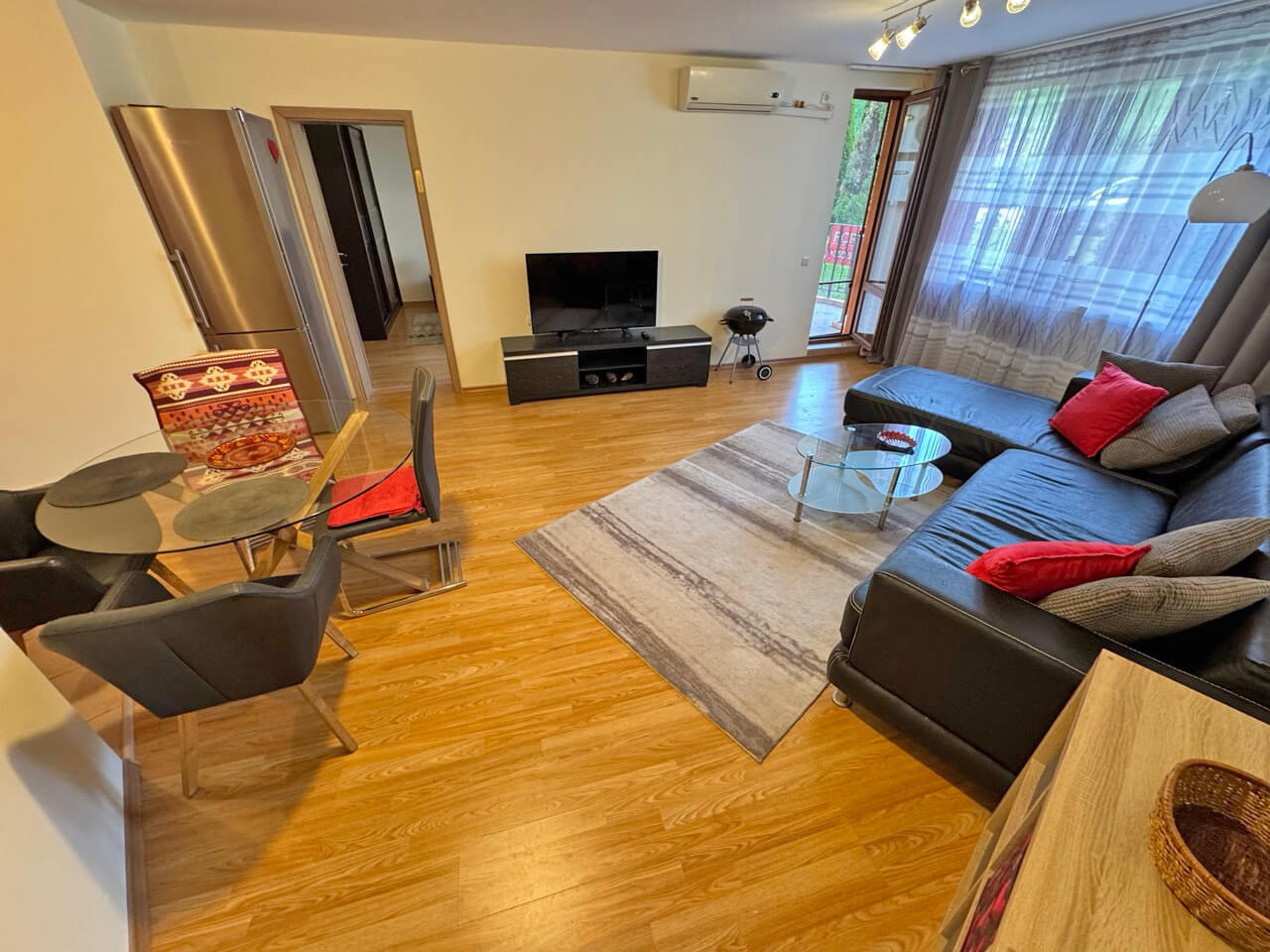 Предлагаме за продажба просторен обзаведен двустаен апартамент в комплекс Sea Fort . Комплексът е разположен на около 300 метра от плажа, между курортите Свети Влас и Елените. Апартаментът се намира на първи жилищен етаж в шестетажна сграда с асансьор, и е с квадратура 83 кв.м. Разпределение: просторна дневна с кухненски бокс и кът за хранене, зона за отдих, спалня, баня с душ кабина и тоалетна, тераса. Апартаментът се продава напълно обзаведен и оборудван. На разположение на собствениците и гостите са плувни басейни, кафе - бар, ресторант, фитнес, тенис корт, поддържани зелени площи, паркинг. Комплексът е целогодишно управление - денонощна охрана, видеонаблюдение, почистване, техническа поддръжка. Комплексът е с много добра локация, в близост до плажа, автобусна спирка,разнообразни магазини и заведения за хранене и развлечения. Акт 16 и Разрешение за ползване. Апартаментът е изключително подходящ за живеене и отдаване под наем целогодишно.