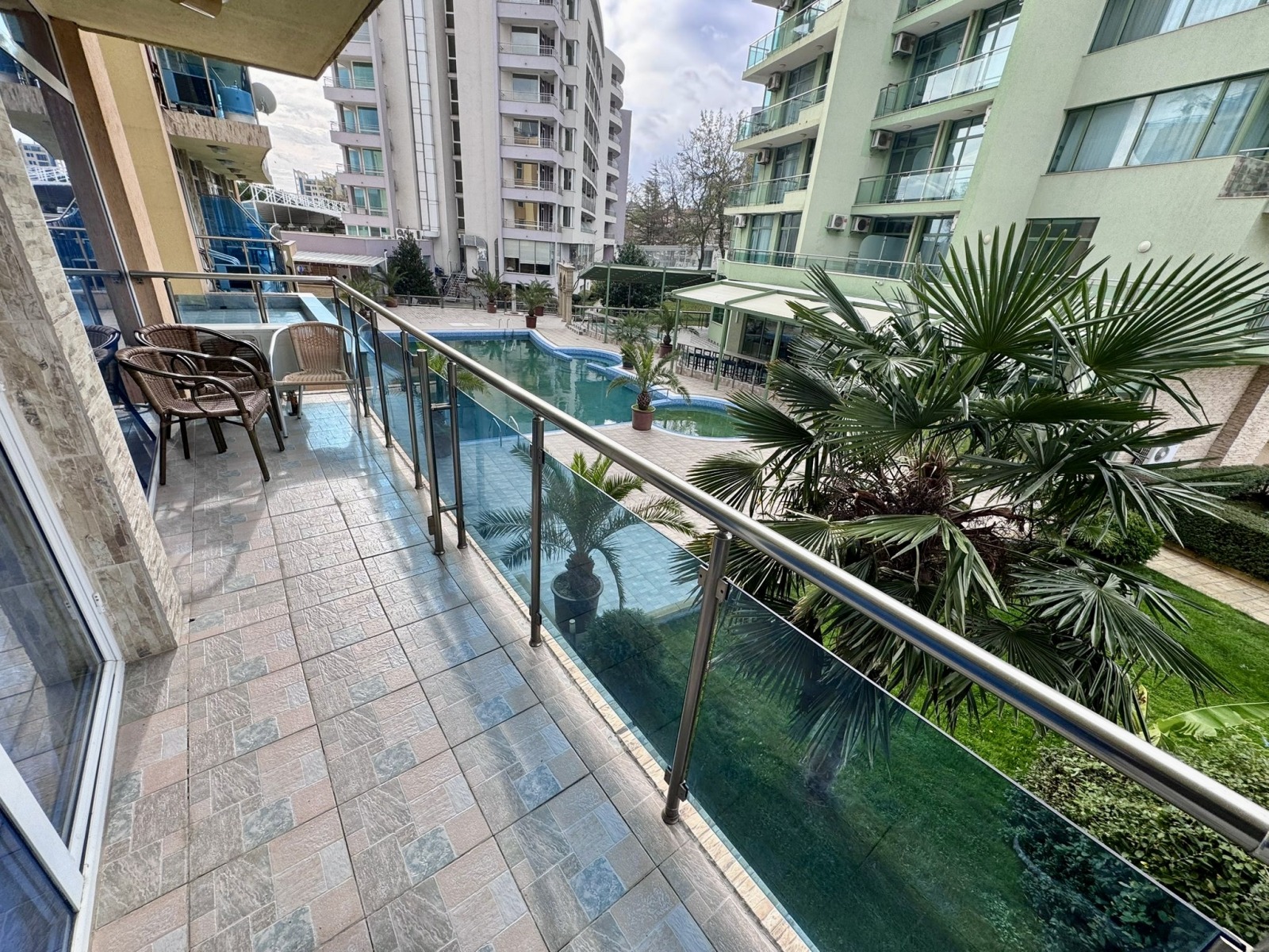 Предлагаме за продажба просторен обзаведен тристаен апартамент с гледка към морето и ниска такса поддръжка, , на първа линия в идеалния център на Слънчев бряг, в к-с Gallery . Апартаментът се намира на втори жилищен етаж и е с квадратура 115 кв.м. Разпределение - просторна дневна с кухненски бокс и кът за хранене, зона за отдих, две спални, коридор, 2 бани с душ кабина и тоалетна, 2 тераси с красива гледка към морето. Апартаментът се продава напълно обзаведен и оборудван. На разположение на собствениците и гостите са плувен басейн с детска секция и шезлонги, детска площадка, ресторант с бар, паркинг с ограничен достъп и видеонаблюдение, добре поддържани общи части, 24 часова рецепция. Комплексът се намира на първа линия в идеалния център на Слънчев бряг, на 50м от плажа и централната пешеходна зона, в близост до автогарата и х-л Кубан , пазара, банки, пощата, голям супермаркет, аптека, разнообразни търговски обекти и заведения за хранене. Комплексът е с целогодишно управление - денонощна охрана, видео наблюдение, почистване, техническа поддръжка. Изключително подходящ е за целогодишно живеене и отдаване под наем. Акт 16. Годишна такса поддръжка 8 евро.