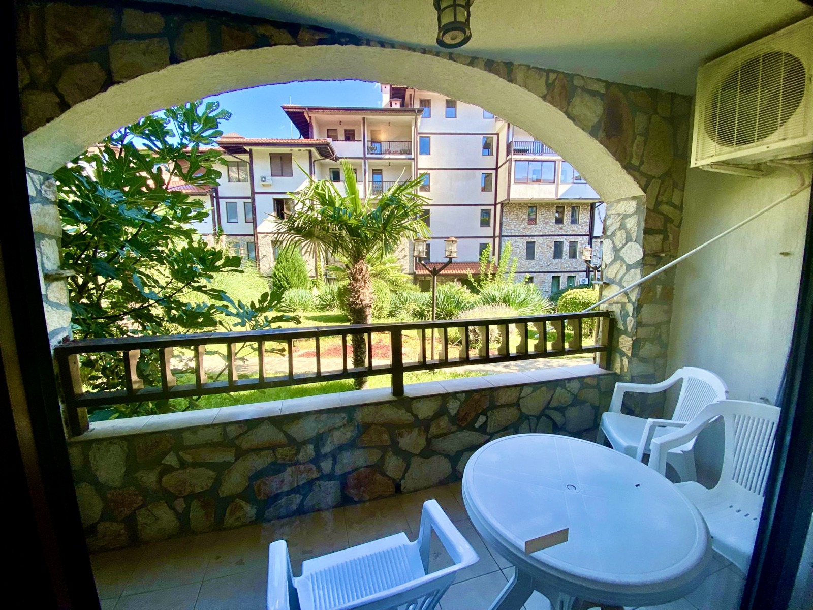 Предлагаме за продажба обзаведен двустаен апартамент. на абсолютна първа линия, на метри от морето, непосредствено пред плажа. Апартаментът е с площ 60 кв.м., намира се на първи партерен етаж. Разпределение: просторна дневна с кухненски бокс и кът за хранене, зона за отдих, спалня, коридор, баня с душ кабина и тоалена, просторна тераса с гледка към красиво озеленената територия на комплекса. Архитектурно комплекса е съчетание на традиционния български стил със съвременно европейско качество, разположен е върху красива, богато озеленена и добре поддържана просторна охраняема територия. На разположение на собствениците и гостите са: рецепция, два басейна за възрастни, два детски басейна, ресторант и бар, фитнес, салон за красота, удобен магазин, безплатен паркинг, денонощна охрана, видеонаблюдение. Акт 16. Годишна такса поддръжка 600 евро. Апартаментът е изключително подходящ за живеене и отдаване под наем целогодишно.