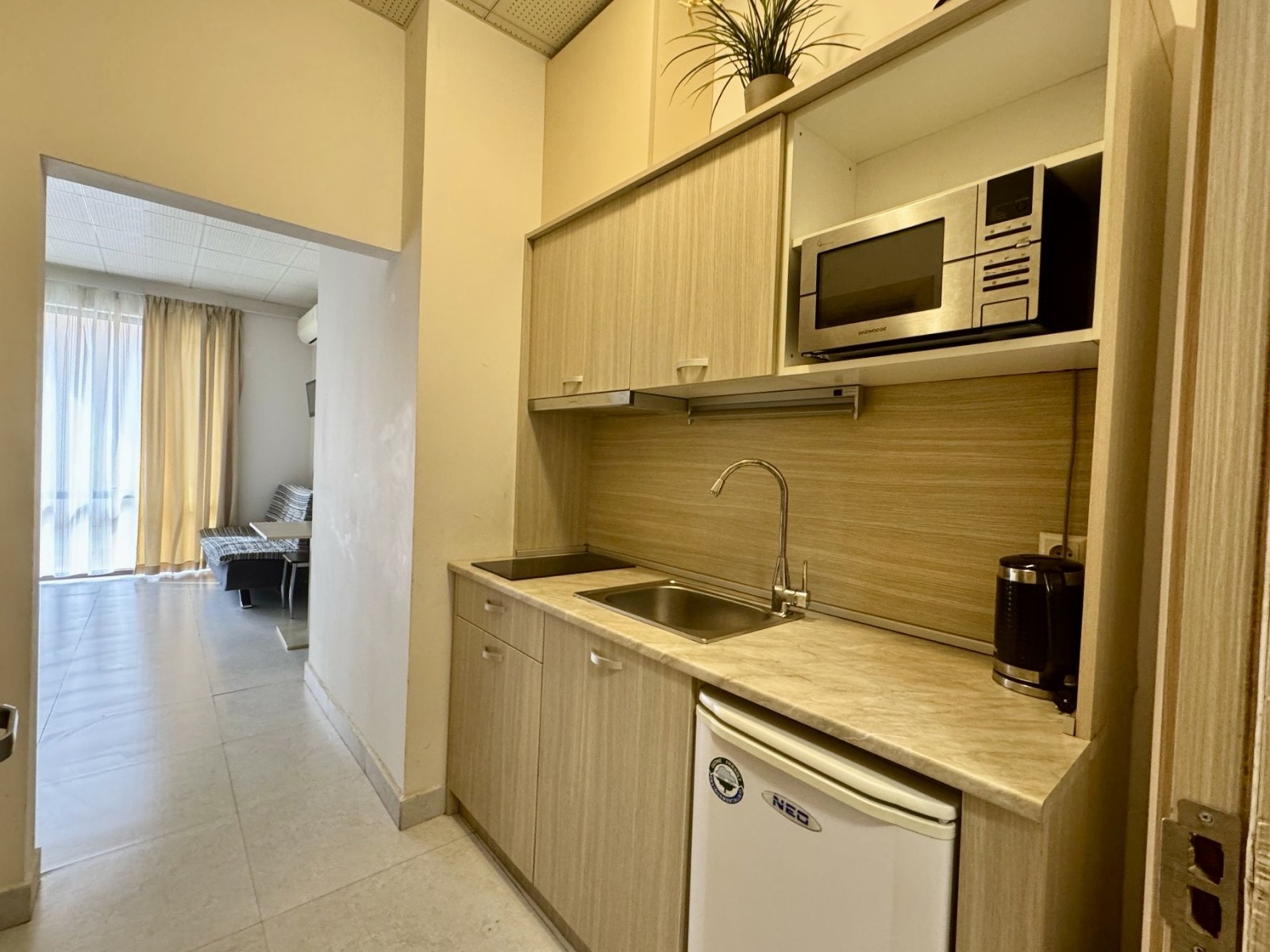 Предлагаме за продажба компактен и уютен едностаен апартамент в елитния комплекс Тарсис 2 , разположен в к.к. Сллънчев Бряг. Апартаментът е разположен на сутеренен етаж и е с квадратура 44 кв.м.Разпределение на апартамента: дневна с кухненски бокс, спален кът, баня с душ кабина и тоалетна, английски двор. Апартаментът се продава напълно обзаведен и оборудван. Комплексът е от затворен тип с целогодишна охрана и поддръжка. Състои от шест жилищни корпуса и разполага с красиво оформени и поддържани градини и зони за отдих, СПА център, детски кът, два басейна, ресторант, барбекю, пул бар, два коктейл бара, пиано бар, салон за красота, паркинг. Предназначение: за живеене или отдаване под наем целогодишно