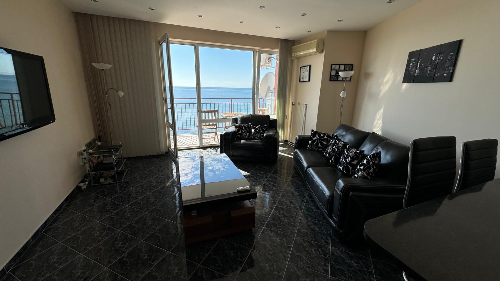 Предлагаме за продажба стилно обзаведен тристаен апартамент на метри от плажа с фронтална морска морска панорама от всички стаи, в комплекс Привилидж Форт Бийч , Комплексът е разположен на първа линия на морския бряг, непосредствено до плажната ивица. Апартаментът се намира на втори етаж и е с квадратура 90 кв.м. Разпределение: дневна с кухненски бокс, кът за хранене и зона за отдих, коридор, две спални, баня с вана и тоалетна, отделна тоалетна, просторна тераса с фронтален морски изглед към целият залив. Апартаментът е след основен ремонт и се продава напълно обзаведен и оборудван. Комплексът предлага комфорт, уют и удобство - басейни с детски секции, детски площадки, фитнес, козметичен център, ресторант, целогодишна охрана и поддръжка, разнообразни магазини. Комплексът е с много добра локация, на метри от плажната ивица, в близост до автобусна спирка, разнообразни магазини и заведения за хранене и развлечения. Акт 16 и битов ток.