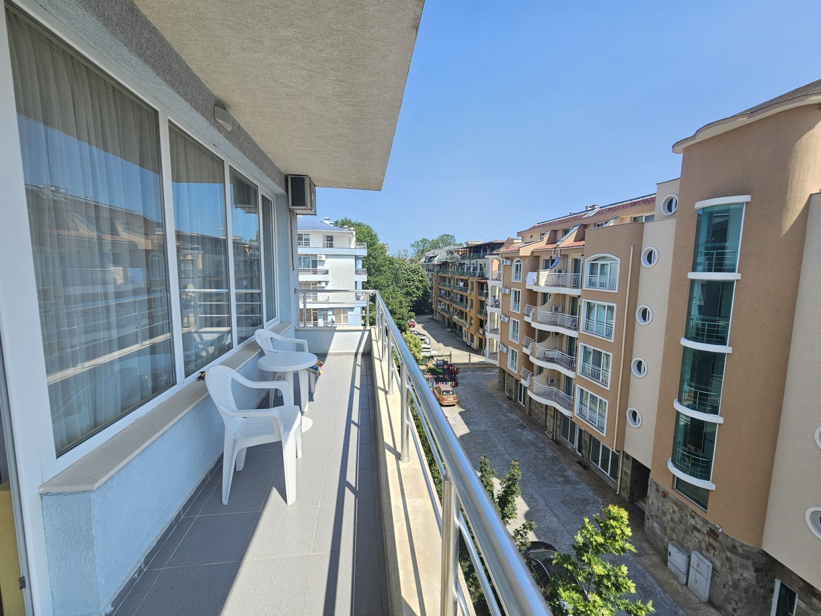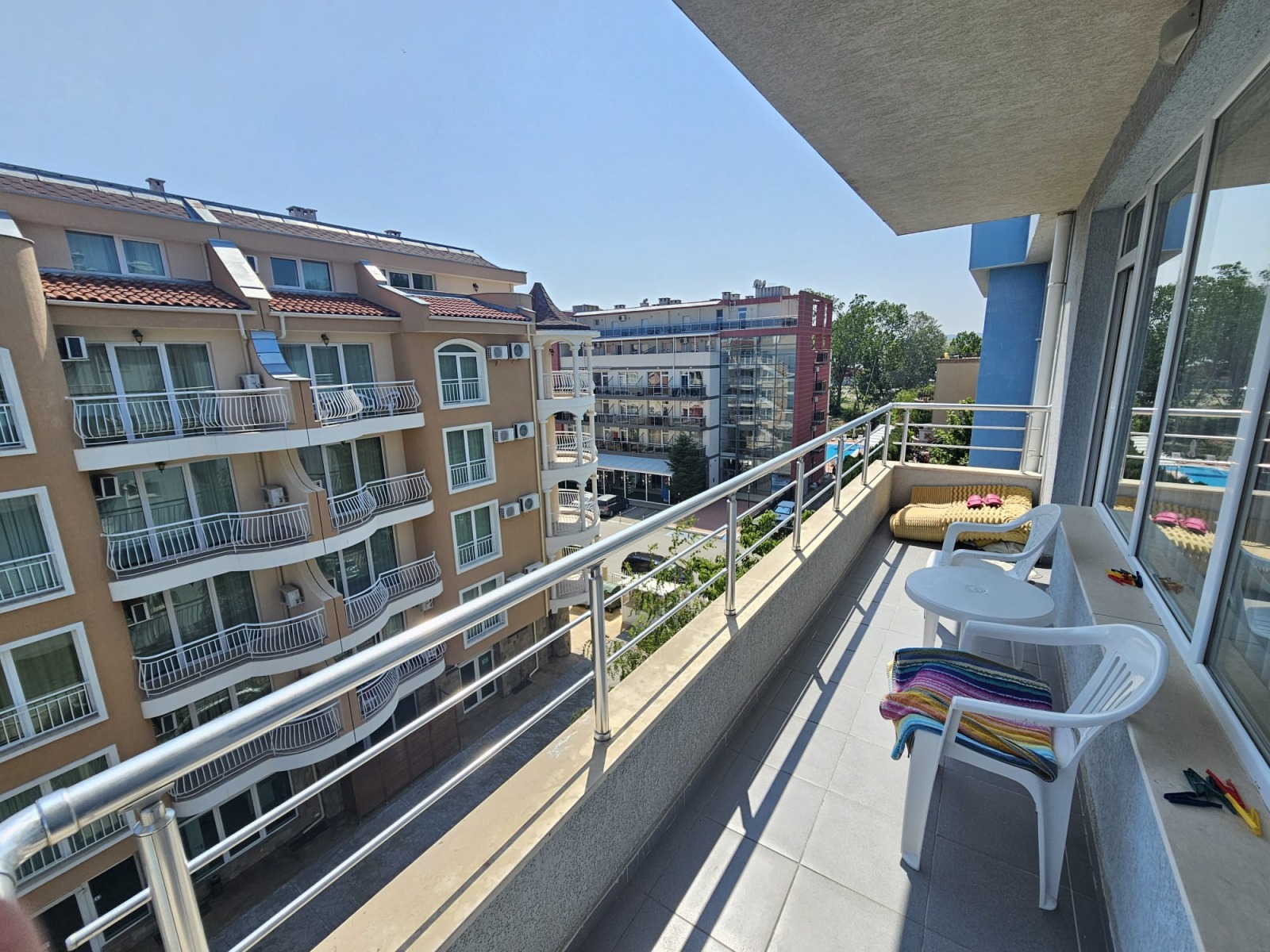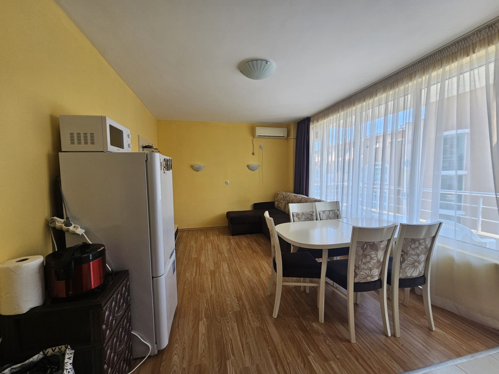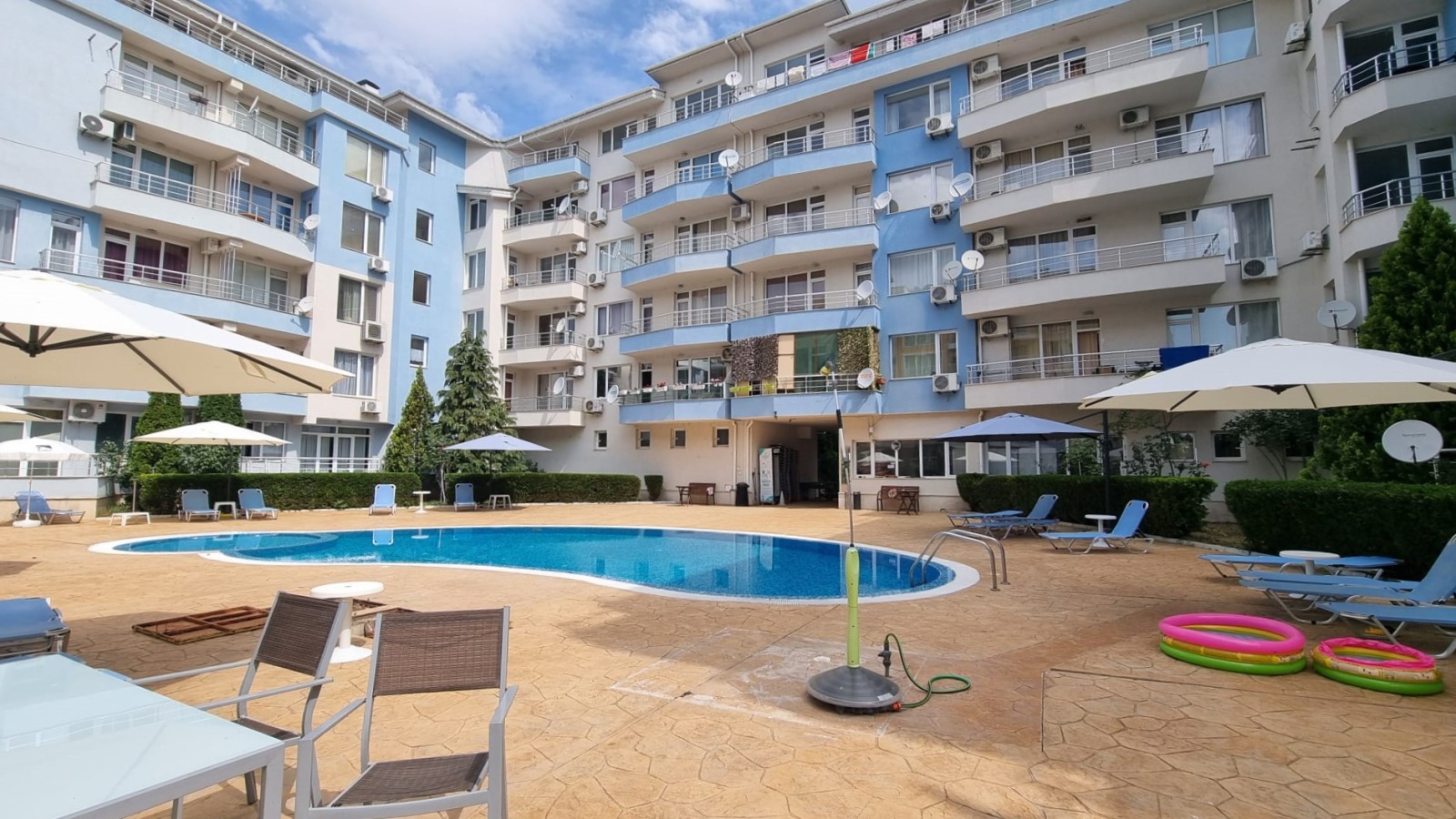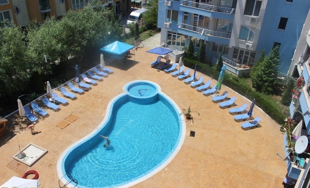 Предлагаме за продажба просторен обзаведен двустаен апартамент с ниска такса поддръжка в комплекс к-с Лагуна 3 , разположен в централната част на Слънчев бряг. Комплексът разполага със собствен паркинг. Апартаментът е с квадратура 70 кв.м. и се намира на четвърти жилищен етаж в сграда с асансьор.Разпределение на апартамента: просторна дневна с кухненски бокс и кът за хранене, зона за отдих, спалня, коридор, баня с тоалетна, просторна тераса с изглед към басейна. На разположение на гостите и на собствениците са открит басейн с детска секция, детска площадка, паркинг, красиво озеленени и добре поддържани общи части, целогодишна охрана, техническа поддръжка. Разстоянието до плажа е около 450 метра. Комплексът се намира в тих и спокоен район с добре изградена инфраструктура - в близост до заведения, търговски обекти и спирка на градския транспорт. Акт 16 и отделни партиди за ток. Такса поддръжка 6 евро на кв.м. на година. Апартаментът е подходящ за живеене и отдаване под наем целогодишно.