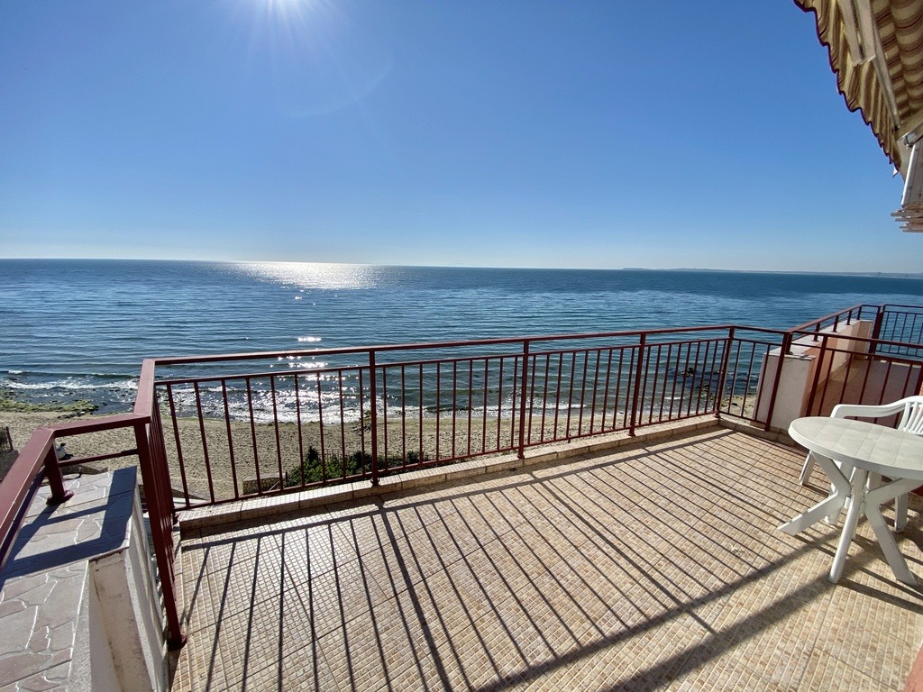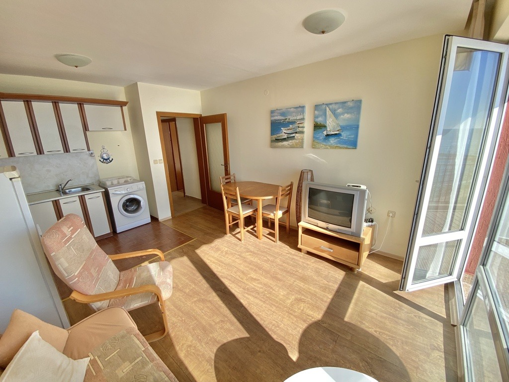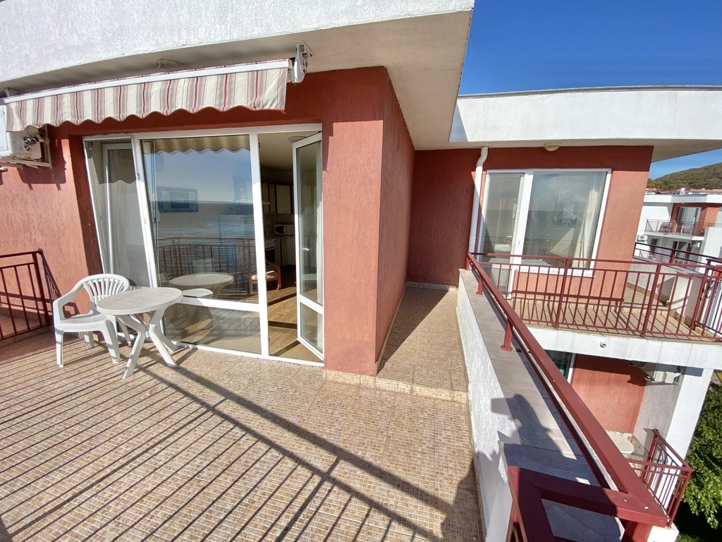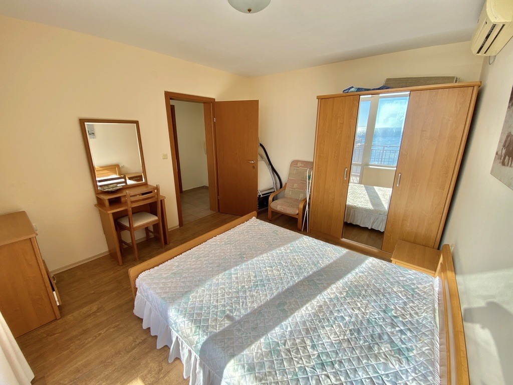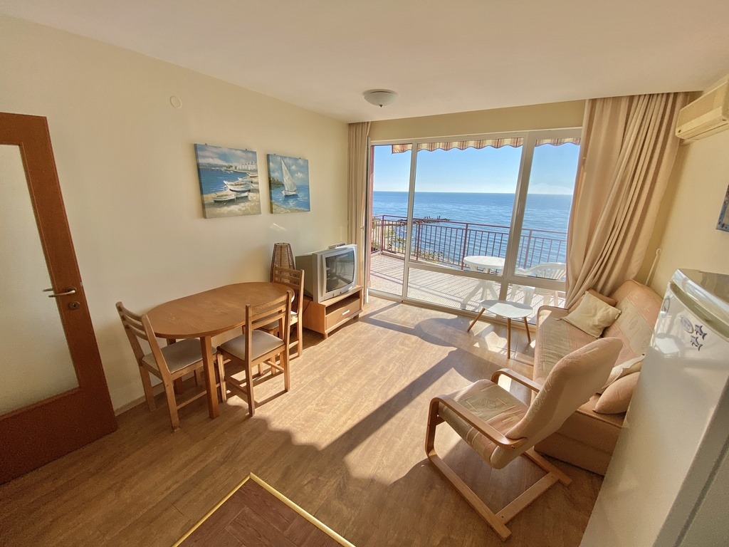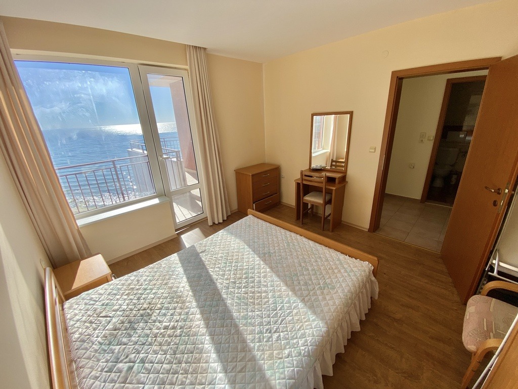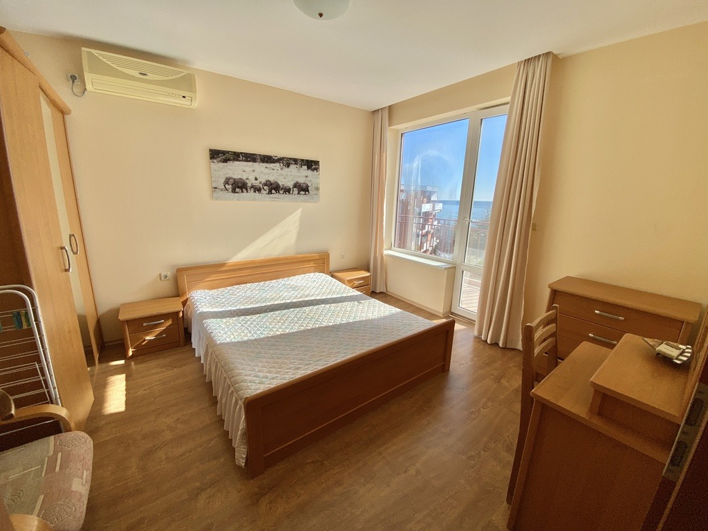 Предлагаме за продажба просторен обзаведен двустаен апартамент с гледка море на първа линия в комплекс Привилидж Форт Бийч . Комплексът е разположен на брега на морето в к.к. Елените. Апартаментът се намира на четвърти последен жилищен етаж в сграда без асансьор, и е с квадратура 73 кв.м. Разпределение: дневна с кухненски бокс, спалня, коридор, баня с душ кабина и тоалетна, просторна тераса с красива гледка към морето. Апартаментът се продава обзаведен и оборудван. Комплексът предлага комфорт, уют и удобство - басейн с детска секция, детски площадки, фитнес, козметичен център, ресторант, целогодишна охрана и поддръжка, разнообразни магазини. Комплексът е с много добра локация, на метри от плажната ивица, в близост до автобусна спирка, разнообразни магазини и заведения за хранене и развлечения. Акт 16 и Разрешение за ползване. Апартаментът е изключително подходящ за живеене и отдаване под наем целогодишно