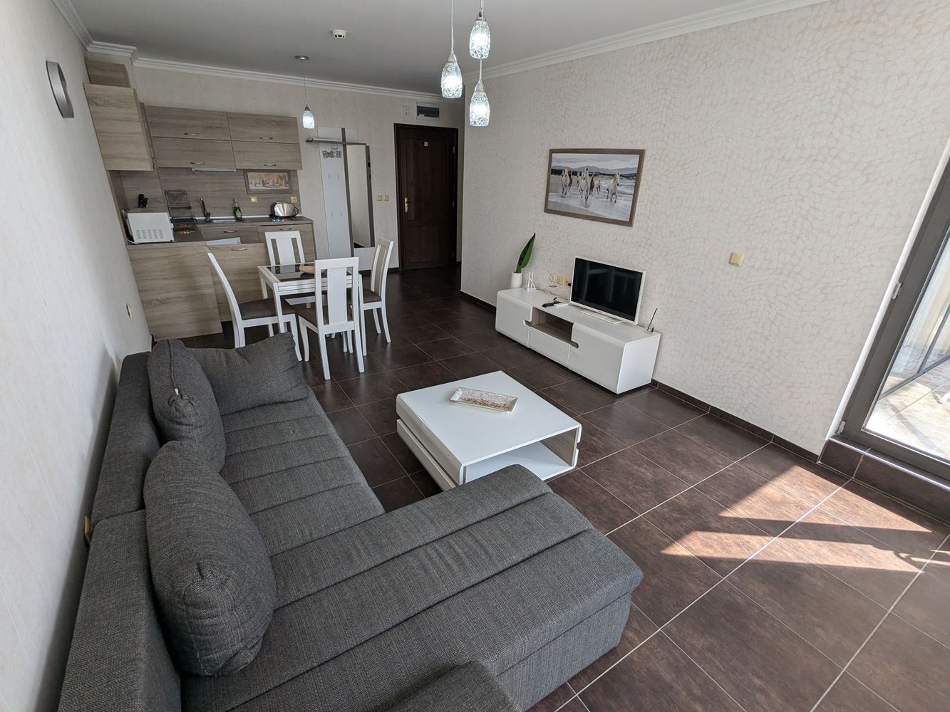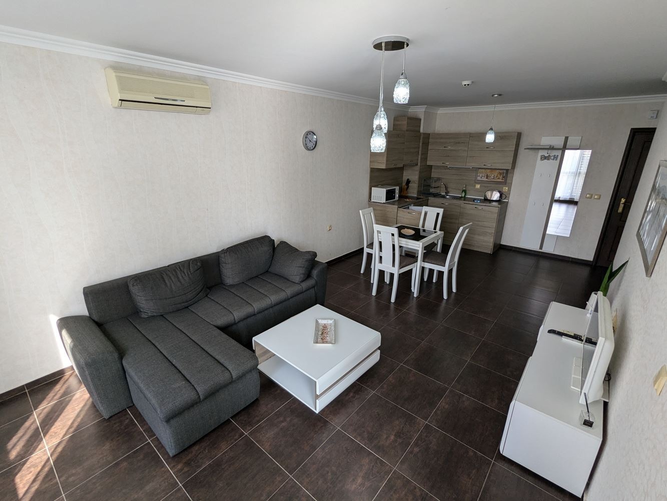 Предлагаме за продажба стилно обзаведен двустаен апартамент с красива гледка към морето на първа линия в к-с Долче Вита 2 в гр. Свети Влас, непосредствено до плажа, до яхтеното пристанище Марина Диневи . Апартаментът е с площ от 61 кв.м и е разположен на трети жилищен етаж. Състои се от просторна дневна с кухненски бокс и кът за хранене, зона за отдих, спалня, баня с душ-кабина и тоалетна, просторна тераса с панорамна гледка към морето. Апартаментът е напълно оборудван и обзаведен. Комплексът предлага: басейн с детска секция, ресторант, кафе, магазин за хранителни стоки, безплатен паркинг, целогодишна охрана и поддръжка. Акт 16. Таксата поддръжка е 10 евро н акв.м. на година. Жилището е изключително подходящо за живеене и отдаване под наем целогодишно.