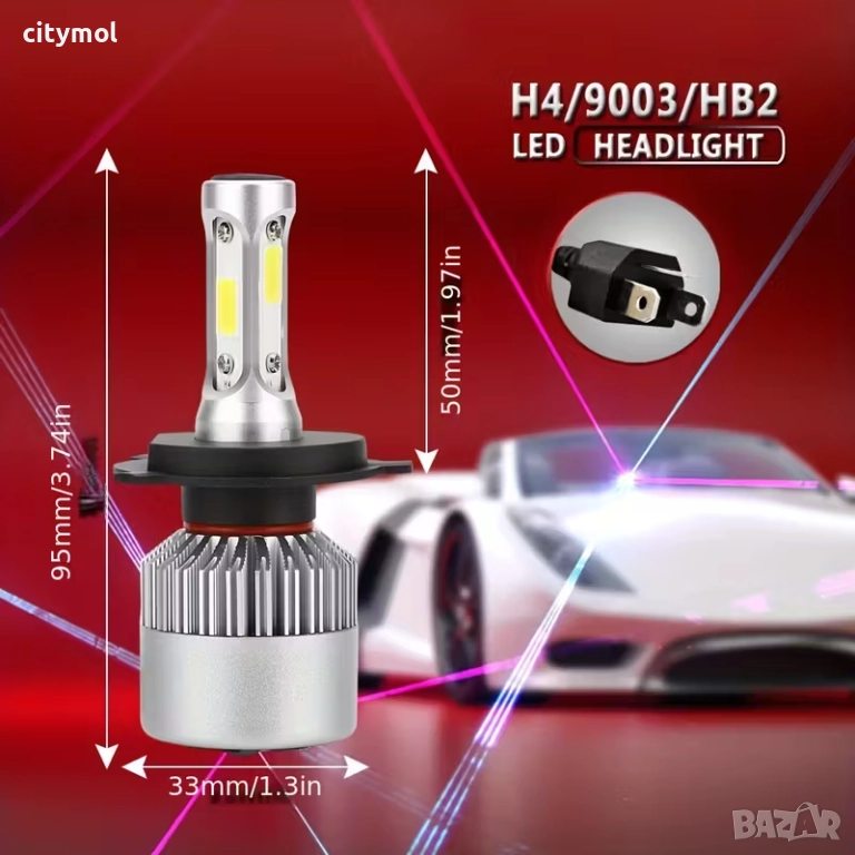 Пакетът включва: 2x LED H4 лампи/крушки за фарове.