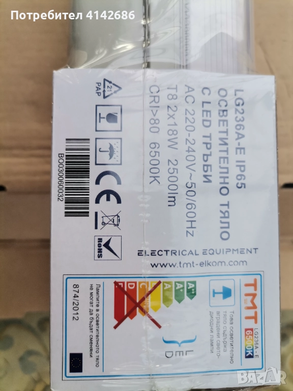 Здравейте, продавам осветително тяло с LED тръби Т8 2х18W, 2500lm, 6500K, и степен на защита IP65. Размерите на тялото са дължина 125см,ширина 11см и височина 9 см. Цена 15 евро.