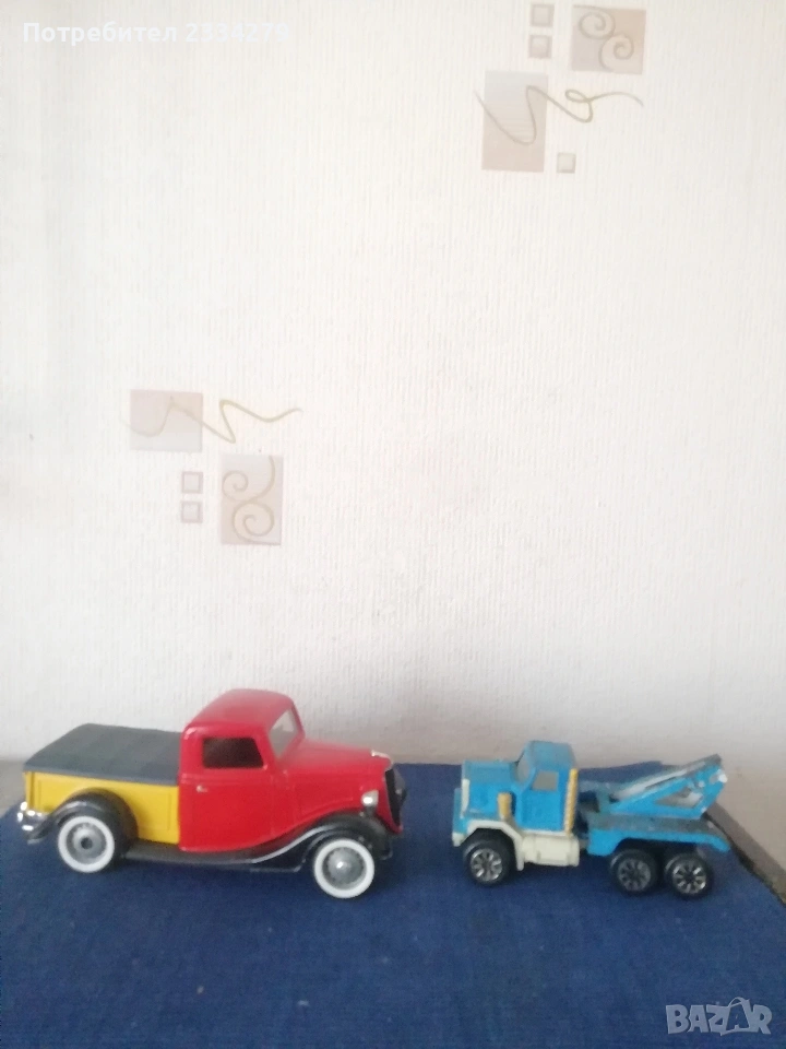 Стари децки играчки различни. N:1 (НЕНАЛИЧНА); N:2 метална стара маркова количка пикап ,,FORD" с цена 8€.; N:3 метални колички от 70-те години 3€. (липсва глава и лека), цена 3€. за брой. ; N:4 два децки капсули пистолета, работещи механизми, 100 производство Еспания през 2000година, цена 8€. за брой; N:5 стара децка шевна машинка от 60-70години,работеща, цена 8€.