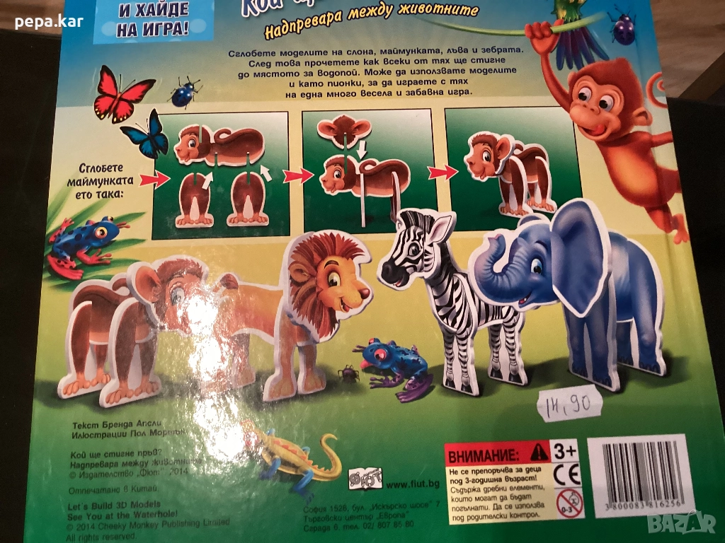 Детска луксозна книжка голям формат. Предлага се с две сглобяващи се животни,с гланцирани твърди страници. Много красива и занимателна,с издърпващо се прозорче за животните. Ще ви хареса
