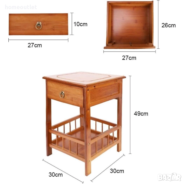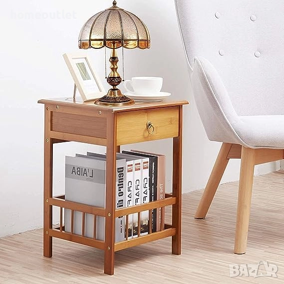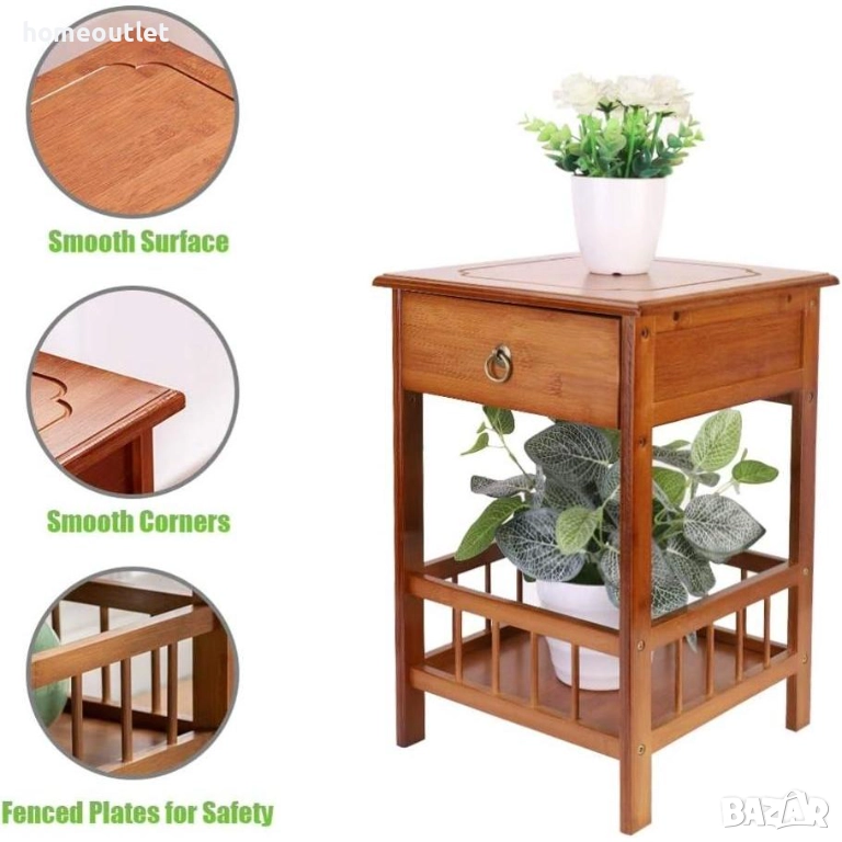 Компактната масичка може да се използва като нощно шкафче, стойка за лампа, помощна масичка до дивана или рафт за растения и декорации.