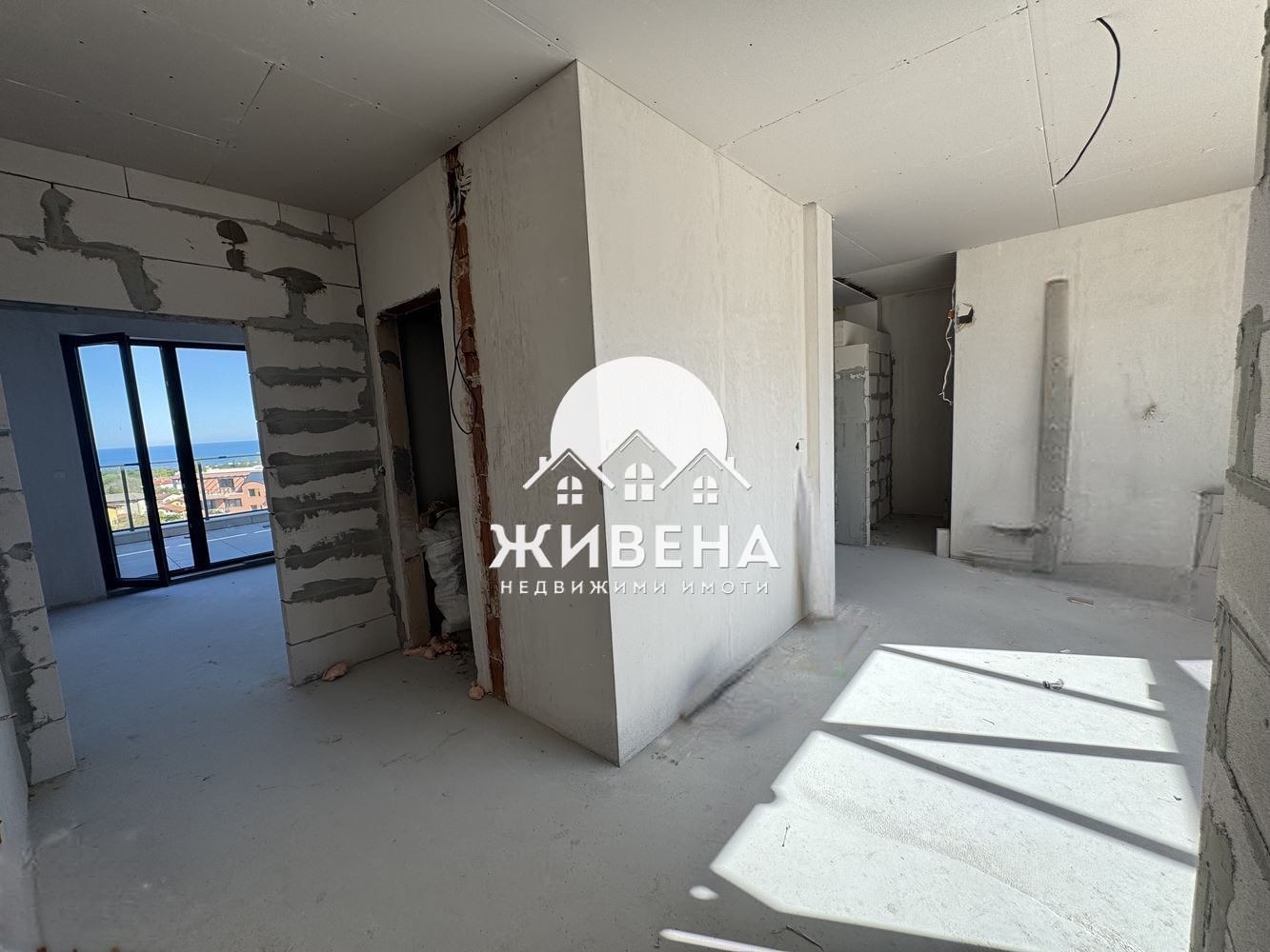 Нова Намалена цена! Предлагаме за продажба голям, панорамен апартамент, разположен е на 5-ти етаж в 5-етажна сграда в затворен комплекс Bella Vita, с АКТ 16, в района между к.к. Св.Св. Константин и Елена и кв. Виница. Имотът е с обща площ 127.52 кв.м (чиста площ - 118.64 кв.м), със следното разпределение: дневна (23 кв.м), кухня (10 кв.м), спалня (14.4 кв.м), две бани с тоалетна (5 кв.м и 3.24 кв.м), коридор (8 кв.м), килер (1.5 кв.м) и две панорамни тераси (21 кв.м и 21.8 кв.м). Апартаментът има възможност да бъде преустроен в 3-стаен, като кухнята може да се преустрои във втора спалня или да се усвои една от терасите и да се получи прекрасна голяма спалня. Имотът е изключително светъл, топъл и просторен, с изложение изток-запад и нескриваема гледка към морето. Направени са подобрения в апартамента, които включват: изолация с гипсокартон и вата на тавана, изравнена мазилка на пода, готов за поставяне на желаната настилка и едната баня е разширена с 1.5 кв.м. Имотът е разположен в нов модерен затворен комплекс с контролиран достъп с бариера с чип, денонощна охрана и видеонаблюдение, парк със зони за отдих, детски кът и спортни игрища - тенис корт. Таксата поддръжка е 65 евро на месец. Водата в комплекса е филтрирана до 100 микрона по италианска технология на ЕУРОАКУЕ. Към апартамента има възможност да се закупи закрито паркомяст. Имотът се намира на 9 км от центъра на град Варна, 1.5 км от к.к. Св. Св. Константин и Елена и Еко парка, на 1.6 км от кв. Виница. Има хранителен магазин в сградата, в непосредствена близост е до автобусна спирка, както и близо до ясли, детски градини, училища, университети и главни пътни артерии. Агенция ЖИВЕНА извършва необходимите проверки на имота, който сте избрали, организира всички етапи на сделката до нейното финализиране. Оказваме съдействие за отпускане на банков кредит. Оферта 7372
