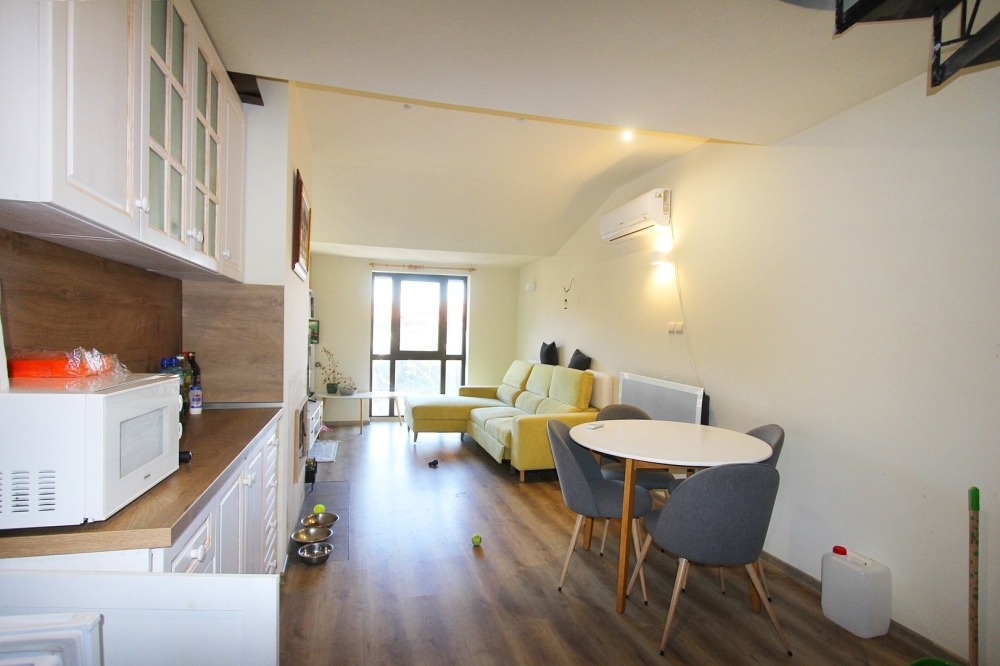 „Интерпрайм“ агенция за недвижими имоти предлагаза продажба двустаен обзаведен мезонет с две бани в жилищна сграда „Гранд Банско 1“ намиращ се в ски зоната на град Банско.