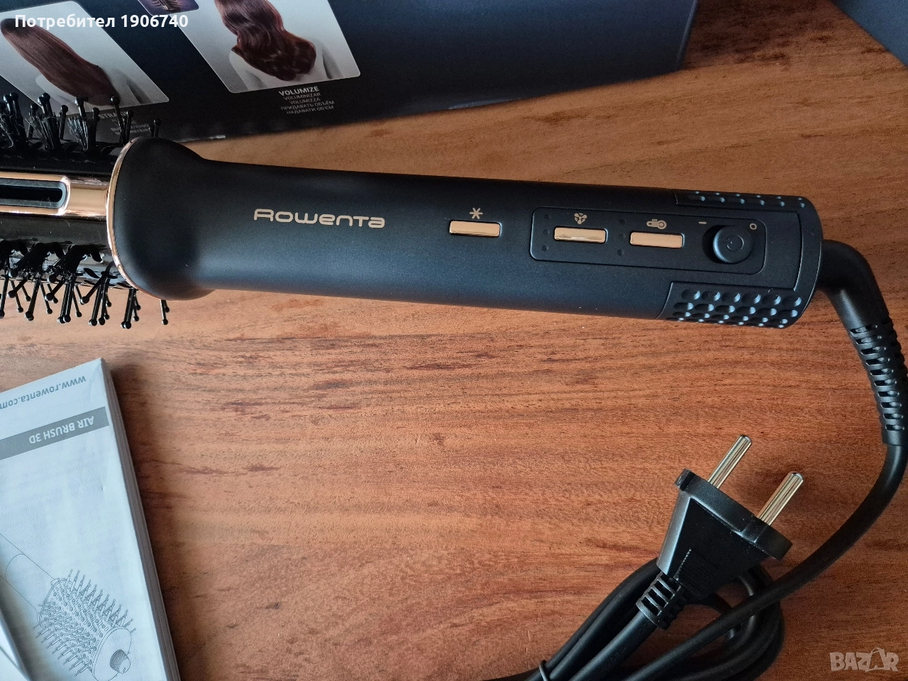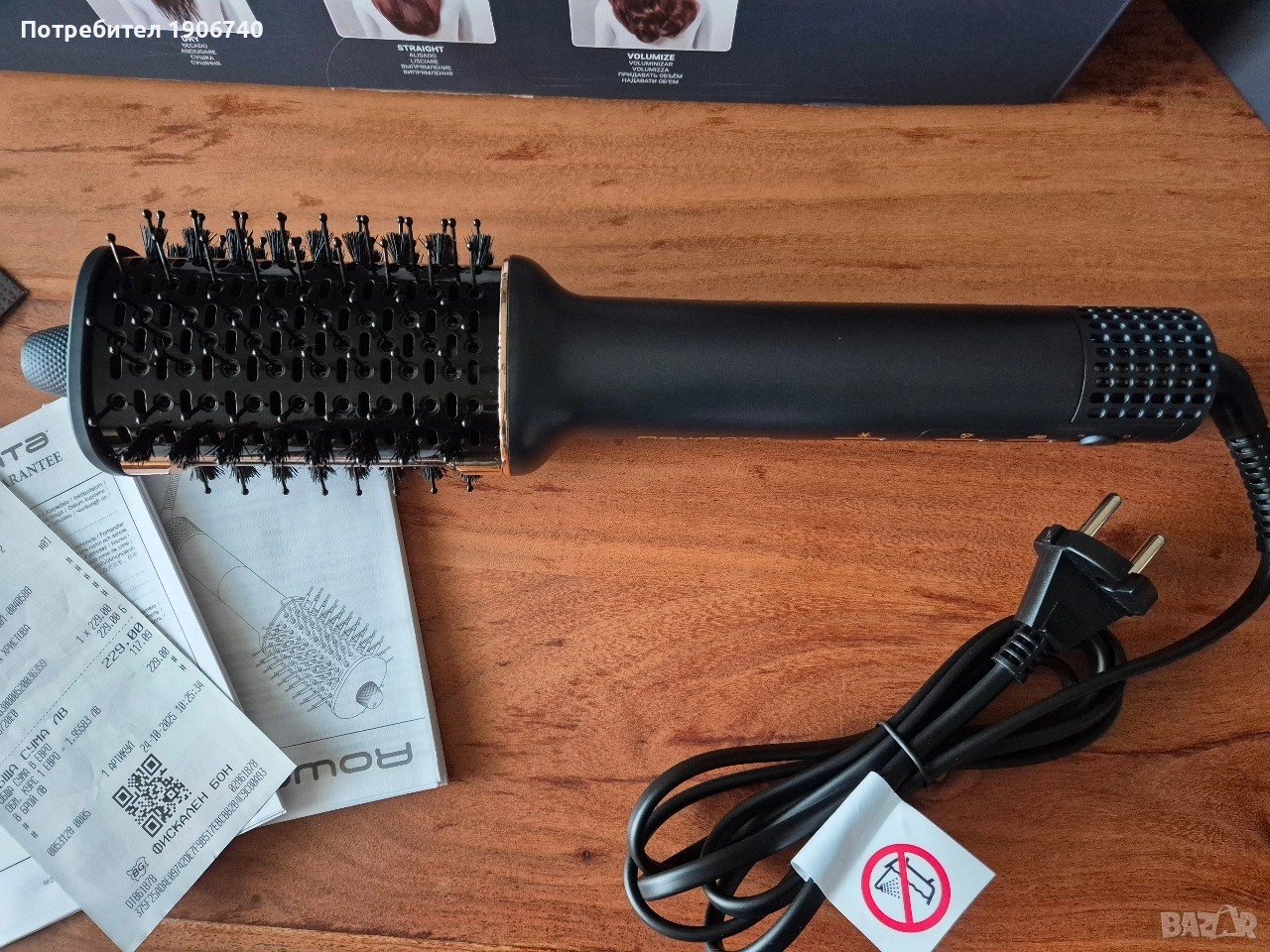 Четката е пробвана само веднъж, купувана е Октомври месец има гаранция 1 година. Описание: Rowenta Air Brush 3D Универсално 3-в-1 стилизиране П рофесионално и универсално стилизиране на косата: елегантно гладка, с повече обем или красива, естествена извивка. Функция Switch С функцията 3-в-1 Switch имате всичко на една ръка разстояние - подобрете рутинната си грижа за косата и се поглезете с ненадминато стилизиращо изживяване. Вертикално предварително сушене Режимъ т на предварително сушене премахва излишната влага - за красива, естествено изсушена коса с повече обем, към която всеки ще се обърне. Режим на овална четка Овалнат а четка предлага 360° въздушен поток за ефективно сушене на косата, което добавя обем на косата по време на разресване и красива, еластична визия. Хоризонтален режим на сушене Плоска та четка лесно разплита и изглажда косата за естествено гладка и права коса с професионално качество на покритие. За всички типове коса Регулиру ем въздушен поток с 3 скорости и 3 температурни настройки за лесно и персонализирано стилизиране, без да уврежда косата ви. Сияйно сияние Усъвър шенстваната йонизираща технология намалява статичното електричество и къдренето, оставяйки косата гладка, лесна за управление и сияен блясък. Лесна за почистване По движната задна решетка прави почистването и поддръжката лесни и безпроблемни, което също допринася за по-дълъг живот на продукта в дългосрочен план.
