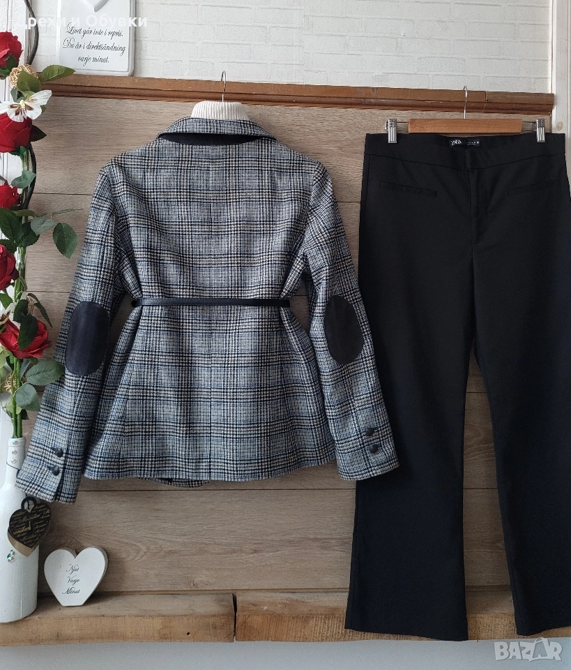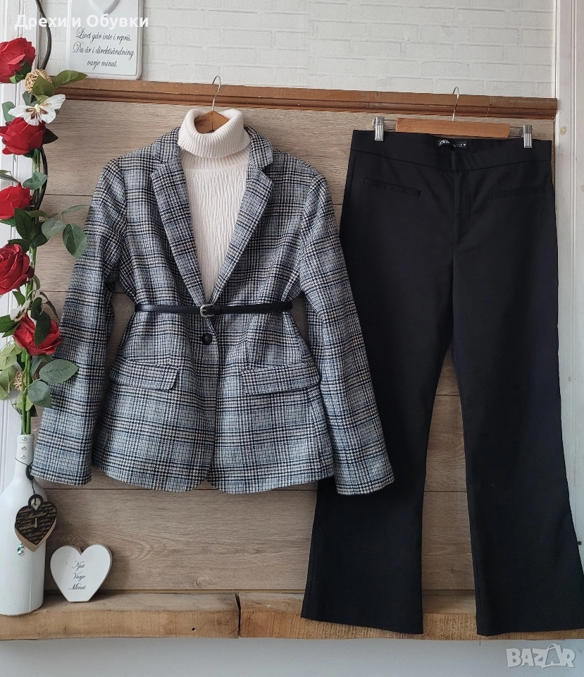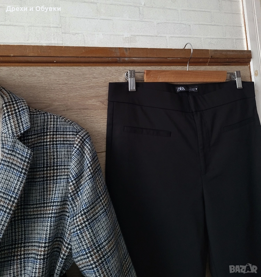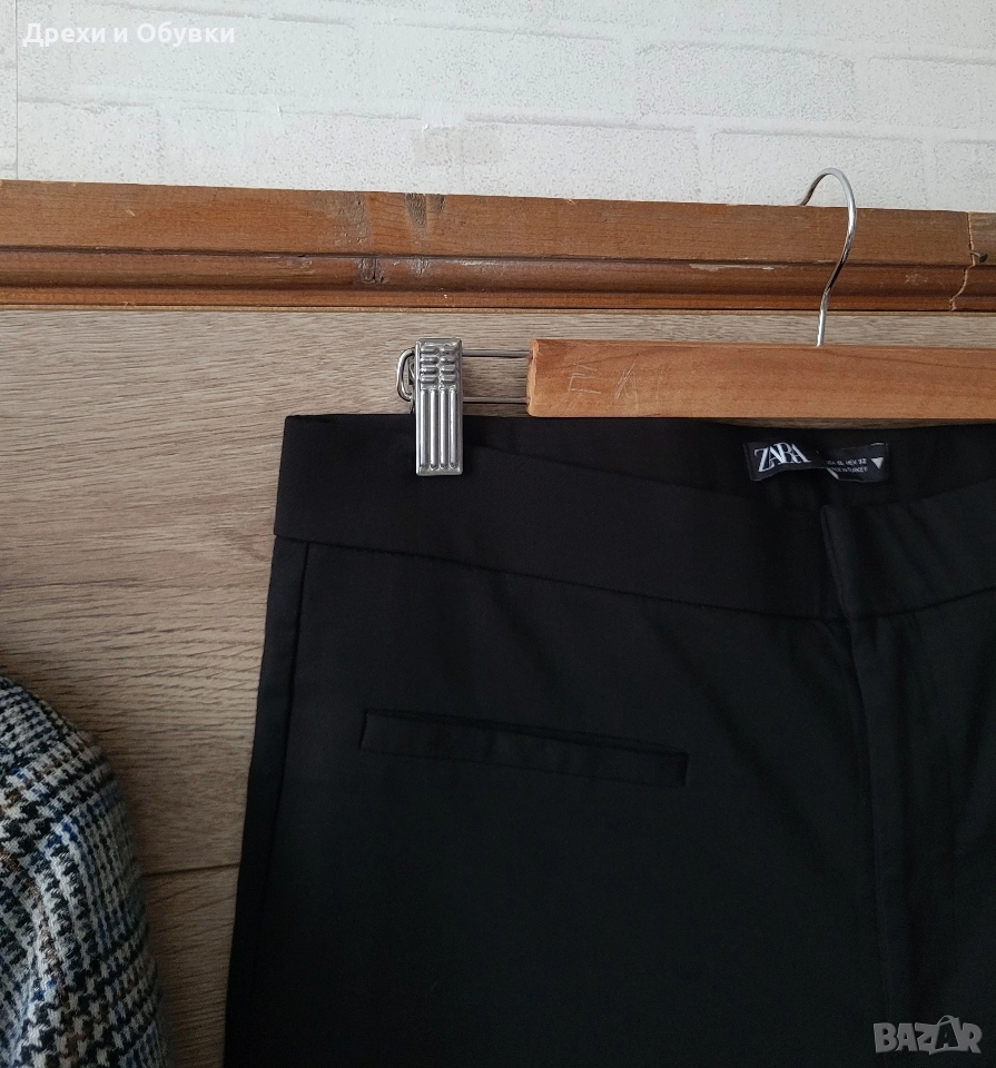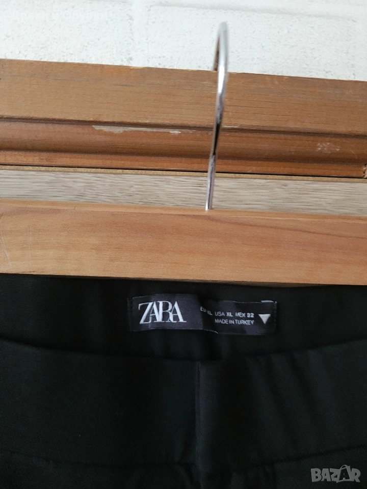 Нов стилен черен панталон на марката ZARA. За офис или повод. В материята има еластичност. Закопчаване скрит цип и копчета Два декоративни джоба. Стои страхотно, комфортен до тялото. Със сако, риза, поло или пуловер. Размер ХЛ. Талия 42-44см ( едностранно измерена), ханш 100-106см, дължина 94см. Цена 45лв
